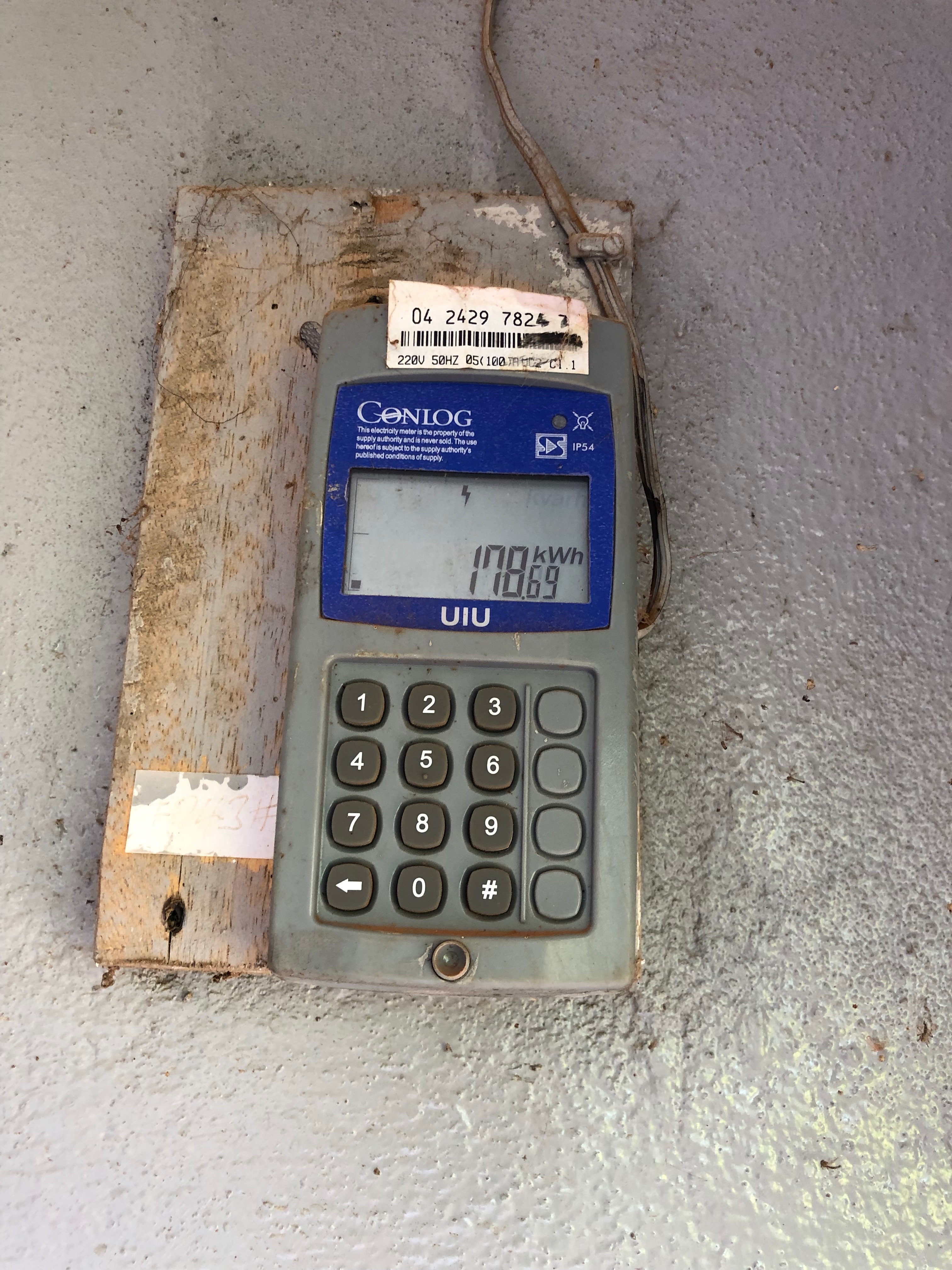 I have mentioned before that all National Power is prepaid. The way we are setup here is that all prepayments are made by the mission office in Freetown. The mission office elders communicate with EDSA and provide money upfront for the amount of electricity they want to buy. Once that is received, EDSA issues a 20-digit code that has to be entered into the keypad attached to the meter on the outside of each person’s house that is wired for electricity. The cost is about 18 cents per kilowatt hour, which is double what we pay in Texas, but still considerably less than running a generator.