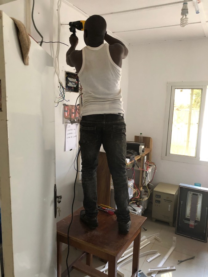 Once the generator was up and running I could tell something was wrong. The AC was not running as cold and the controls on the front indicated trouble. Since we do not have an operating manual, I could not diagnose the problem, but the next morning I called Markus and said something was wrong. He sent his best electrician from Freetown to come and he knew immediately the problem. It was a 3-phase generator and we were only hooked up to one phase, so the other two phases were stressing the generator. Furthermore, this 20 kW generator was carrying all of the load on one phase, which was essentially giving us just under 7kW instead of 20kW. Now I understand completely why the other generator continued to fail time after time. It was hooked up the same way and it simply could not carry the load placed on it.