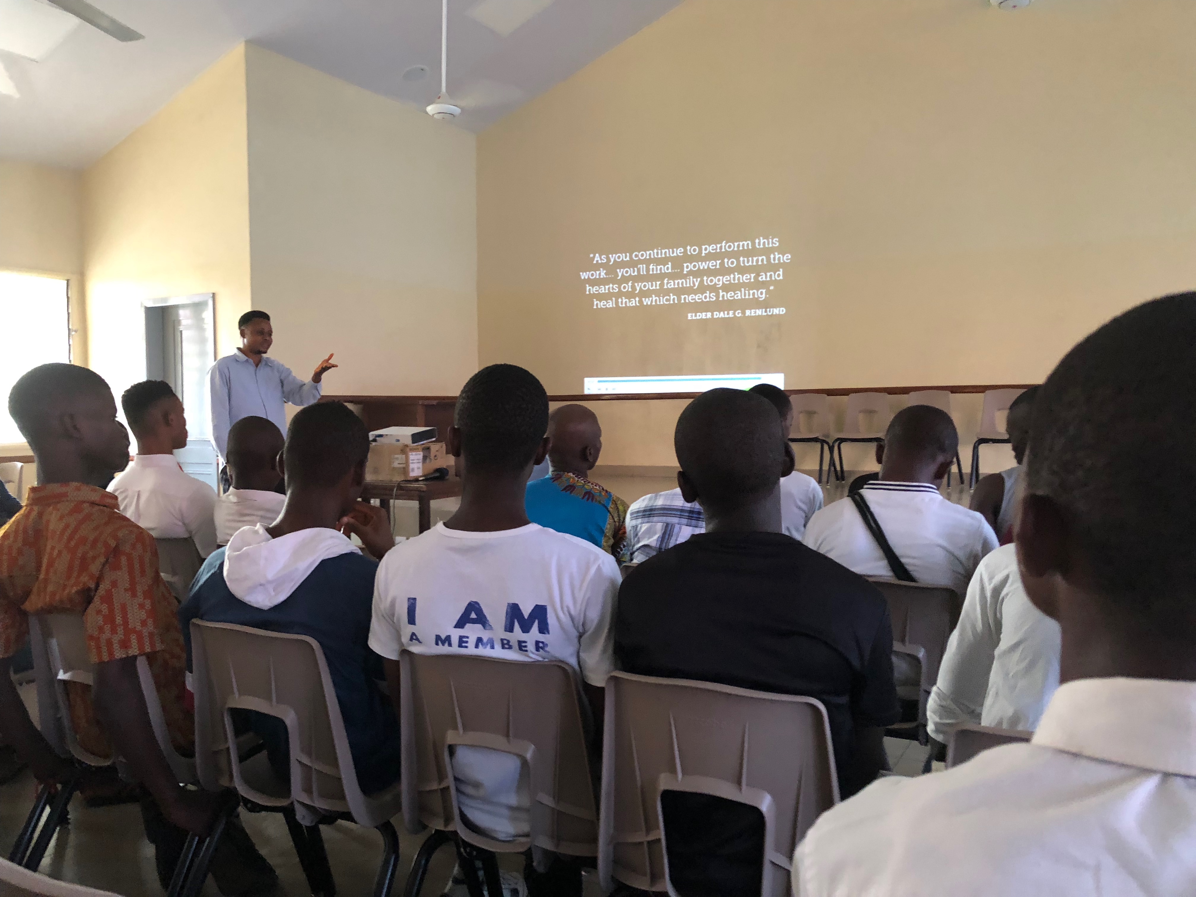 In the afternoon about 50 of these young men and their leaders traveled to the District Center to participate in a Family History fireside where Tobechi Inmpey, the District Family history consultant who gave a very good presentation. I think we probably needed some additional follow-up or hands-on activity for the young men to actually do some family history work themselves, but that will need to come later. It is so much more difficult here as those who do have phones rarely have phones that are “smart” and even more rare is access to data. But they certainly left the meeting inspired!