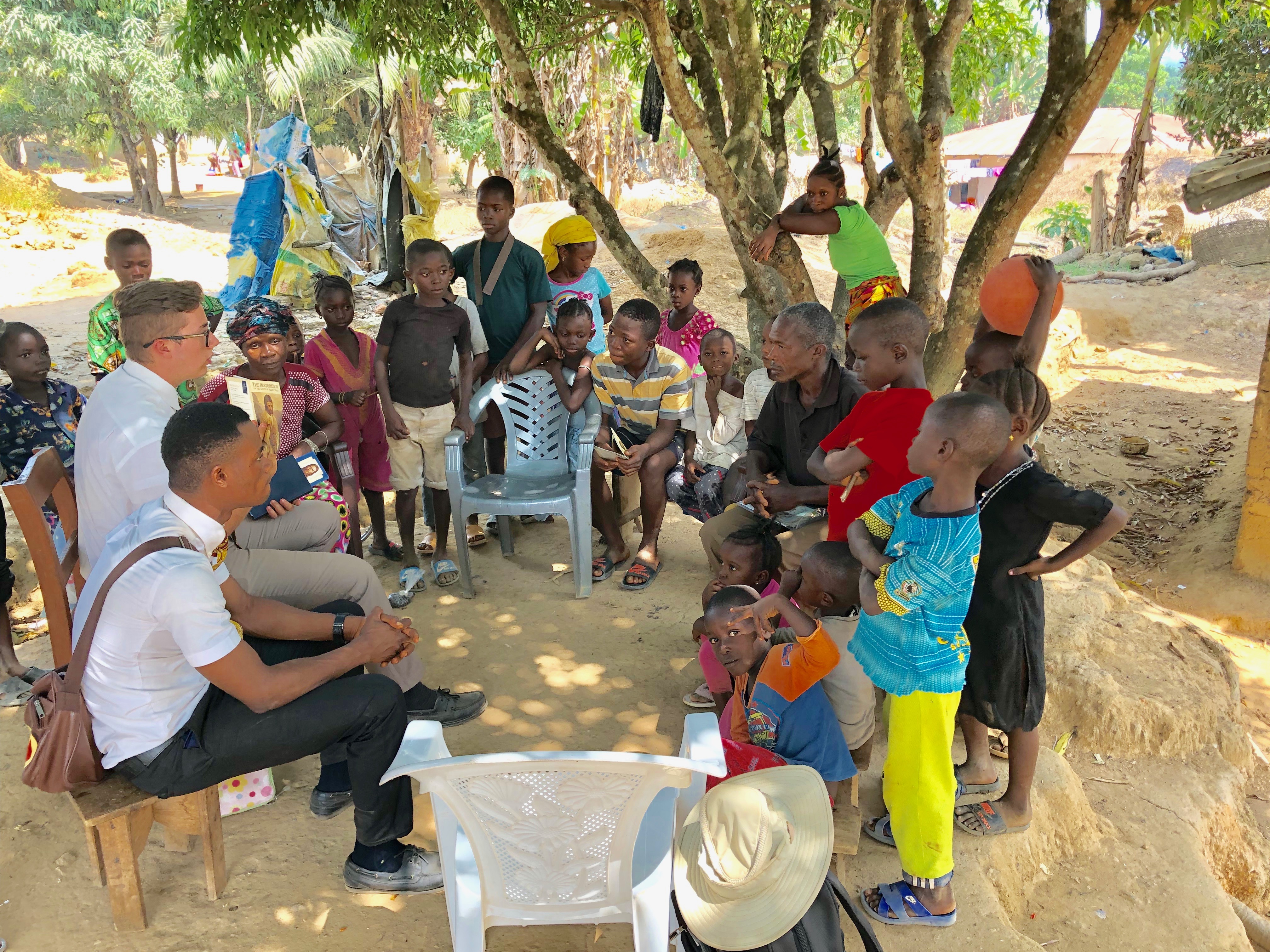 Elder Adjety and Mohamed worked together and Elder Wallentine and Magnus worked together. I am absolutely in awe of these young men. Though not yet full-time missionaries, they taught with power and authority. This week we taught a total of 20 people. Even though we try to limit adding anyone new, it still happens. 6 of the 20 are on the second discussion and are progressing towards baptism. The other 14 are still finishing lesson 1. The highlight of the day was the teaching of the Sahr Lahai family. Sahr Lahai speaks very little English and in fact, not even much Krio. But he has an incredible spirit about him. Nearly everything he said was in Mende. His wife is not a lick behind him in all things spiritual. As we taught them there were as many as 20 children gathered around listening. Several of them were older. We came to a point in the discussion where Elder Wallentine asked Magnus to teach about prophets.