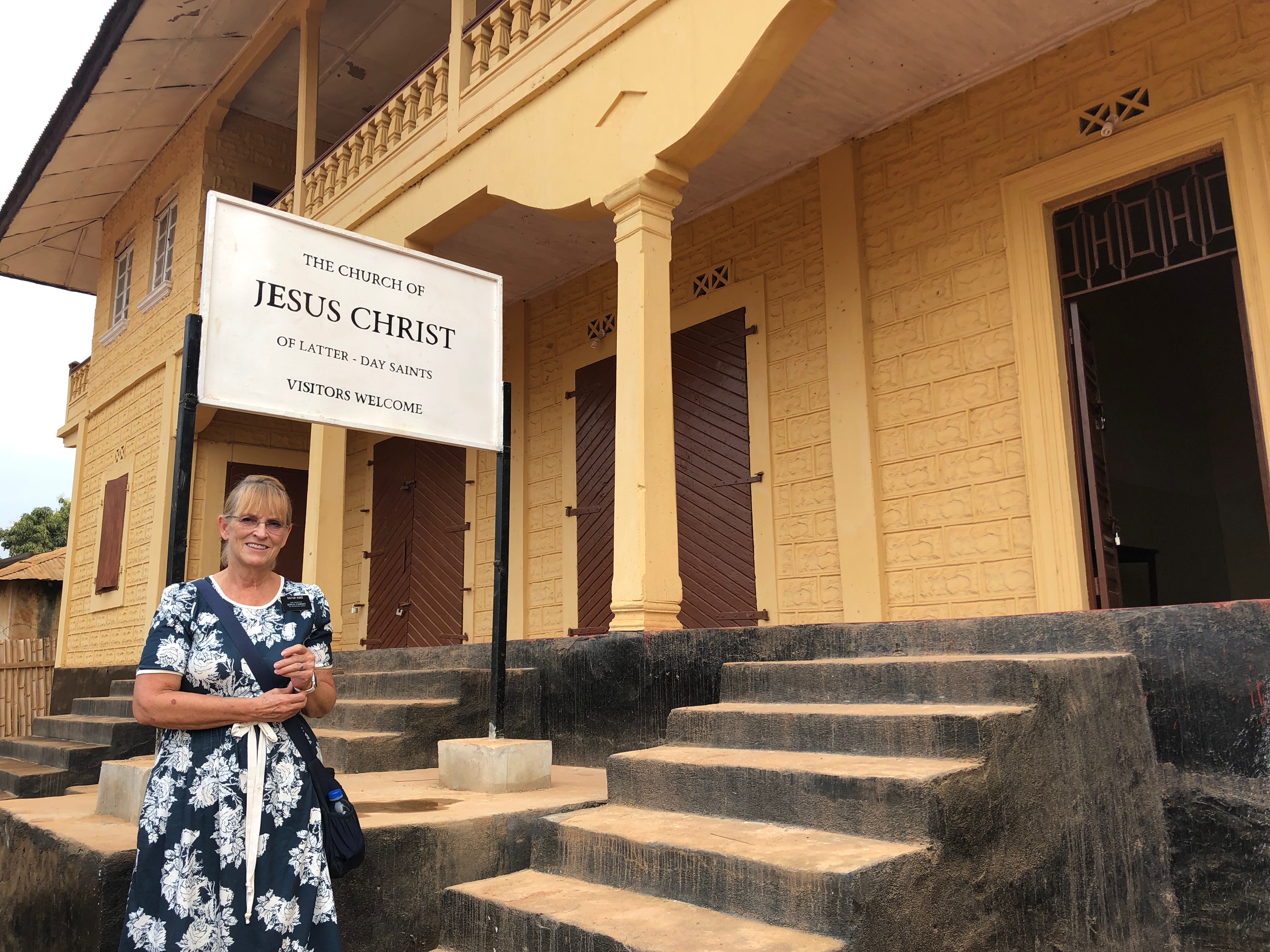 LaDawn in front of the new Kailahun branch building. The chapel is on the 2nd floor