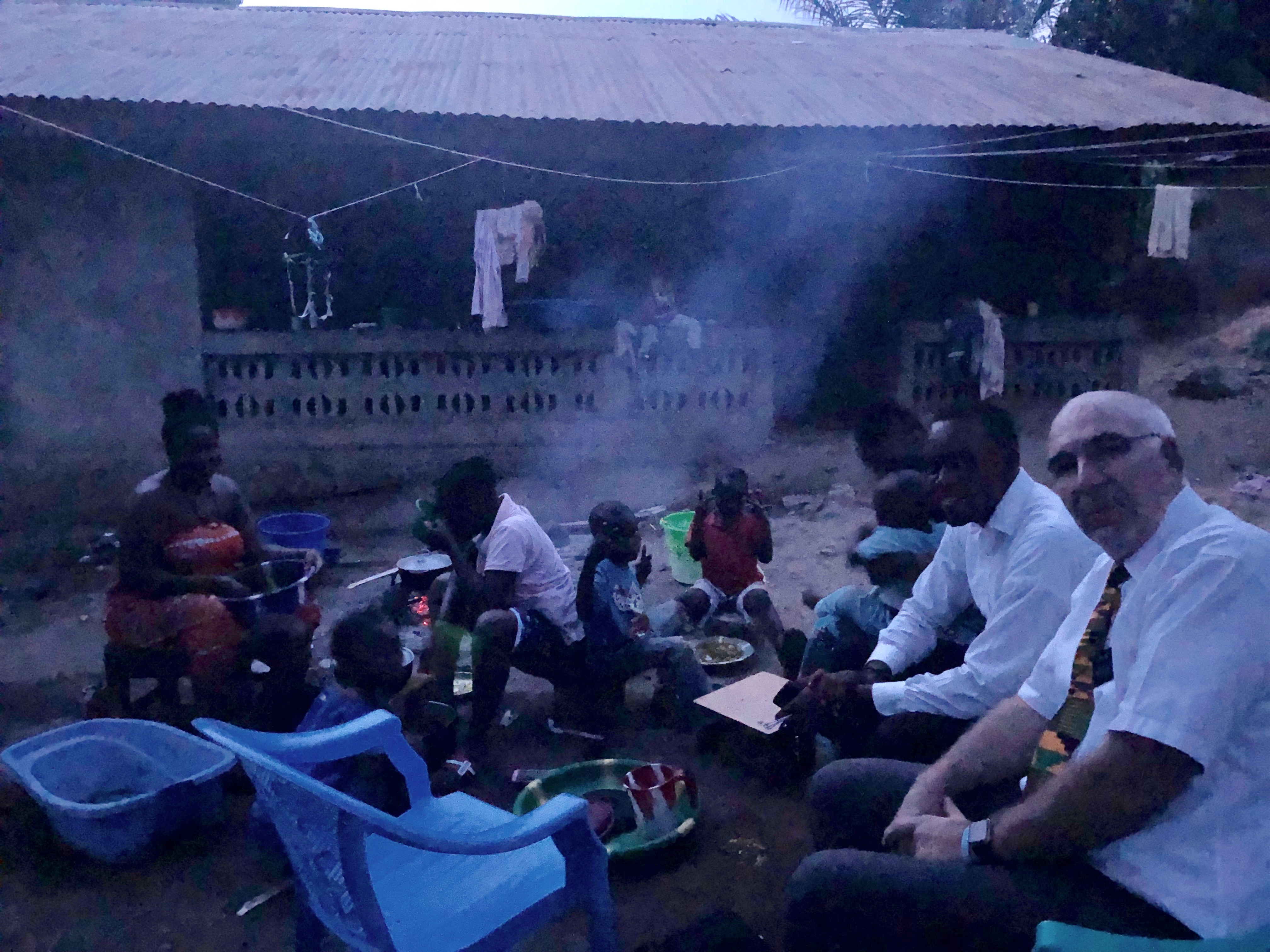 Her family is Muslim and right before her mother died made her promise to never become a Christian. This has put her in a difficult position. She is a very bright woman and they have a wonderful family, but she does not want to go against her dying mother’s wish. Her sister-in-law was cooking dinner and as we sat down to speak to Br. Francis’ wife, she put a plate of rice with cassava leaves and fish in front of us. LaDawn doesn’t do very well with the spicy peppe, so President Morison and I ate it. My first Cassava leaf meal. Much sweeter than the potato leaf we ate with the missionaries last year. It was good.