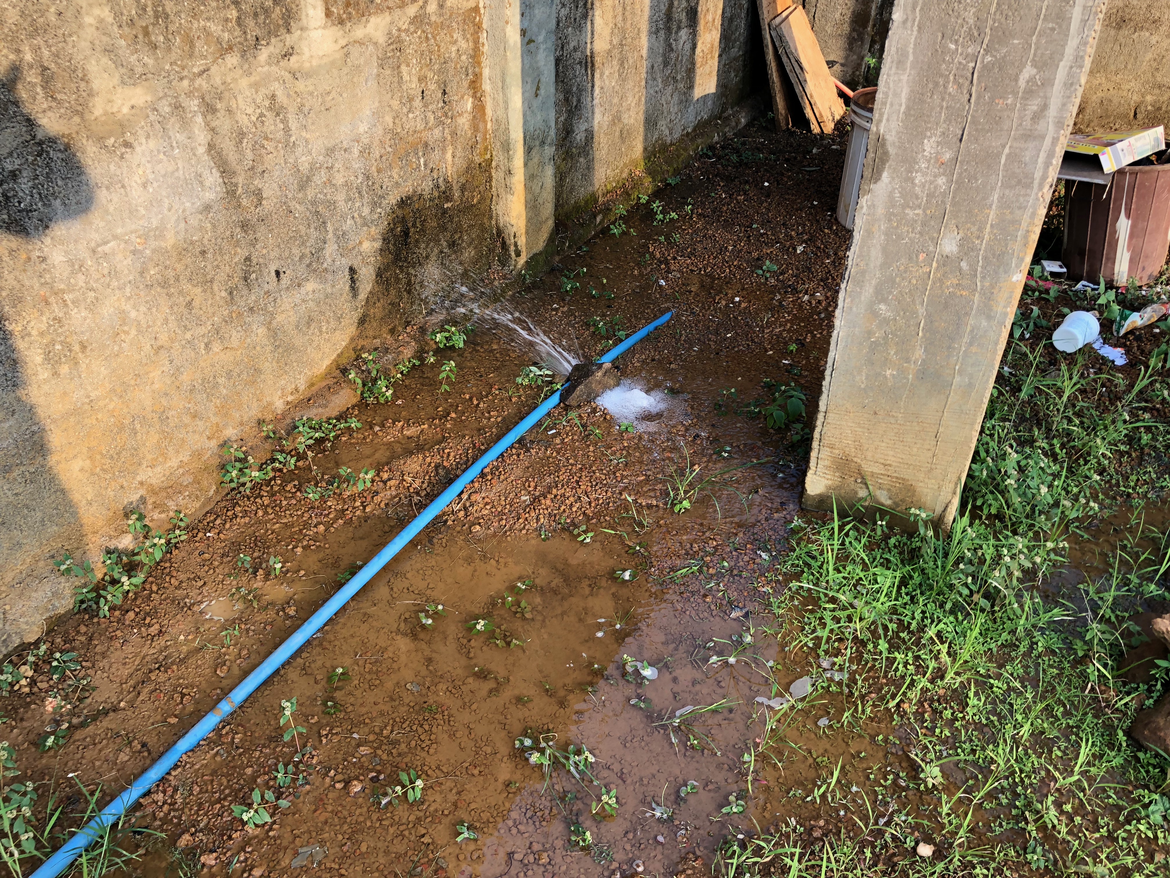 However, it seems that they moved next door to the sisters apartment! The water line that comes into the city and into their water tank sprang a leak in the afternoon and although we called the plumber immediately and he came right over, every time he tried to tighten the union fitting that he had installed, the pipe cracked further. The pipe itself had been exposed to the sun for some time and eventually the sun baked it. Even though there is not a ton of pressure in the line, it still broke the weakened pipe. As it turns out, the pipe had to leak all night long and the plumber (Mohamed Lukulay) came back Wednesday morning and replaced the entire section. Our guard Charles David then buried it so it would not reoccur.
