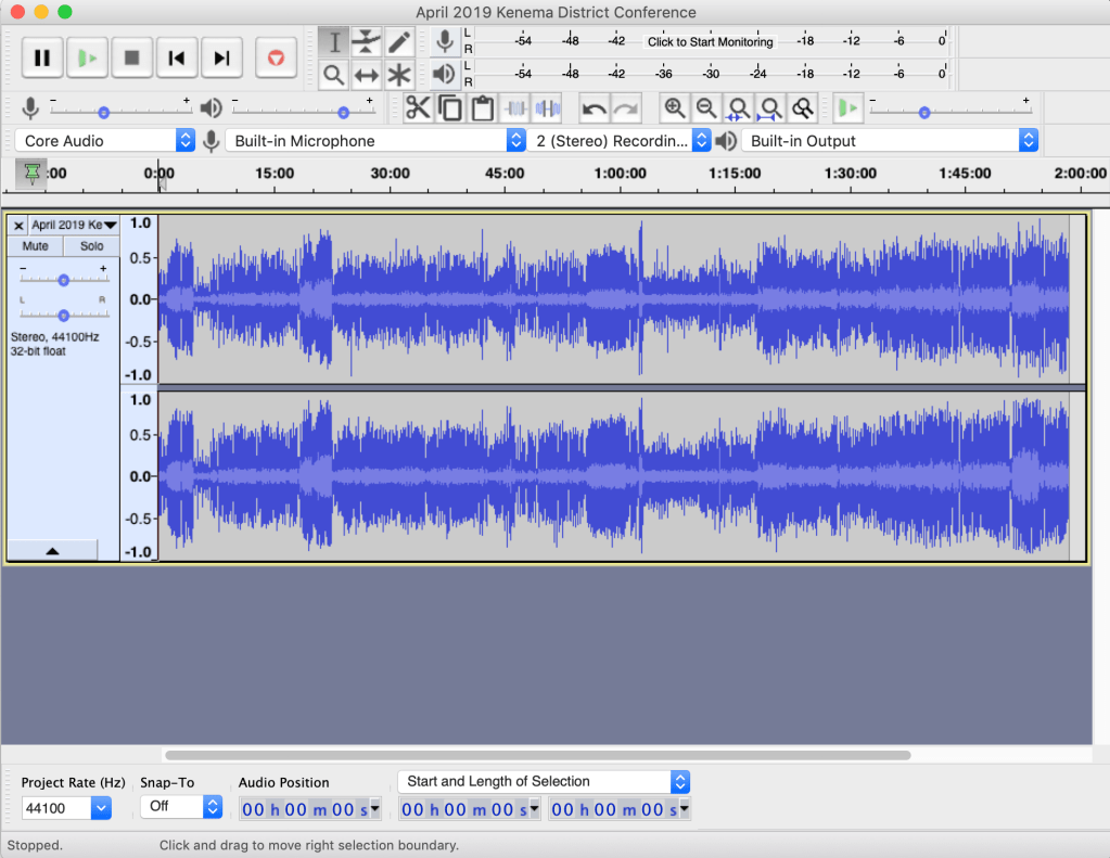 First of all, the sound on the GoPro was better than that coming from the XT-2 or the iPhone X. We didn’t realize there is a setting in the GoPro 5 that creates a .wav file at the same time it creates the video file and that it just happened to be on. This proved to be very helpful to us. We started by converting the wav files to mp3 in Audacity (a nice open source sound program) and then we used a