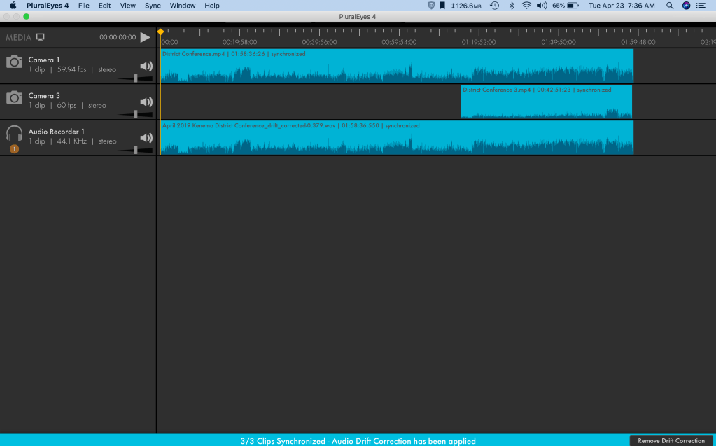 The next step was figuring out how to use all three video files from the 3 cameras (XT-2, iPhone and GoPro). At first we thought we could match them up using the sound wave as a guide and cut and paste the sections. But it didn’t take long to realize that wasn’t going to work as there tends to be what is called “audio drift” between the 3 cameras, meaning the audio and video tend to get out of sync.
