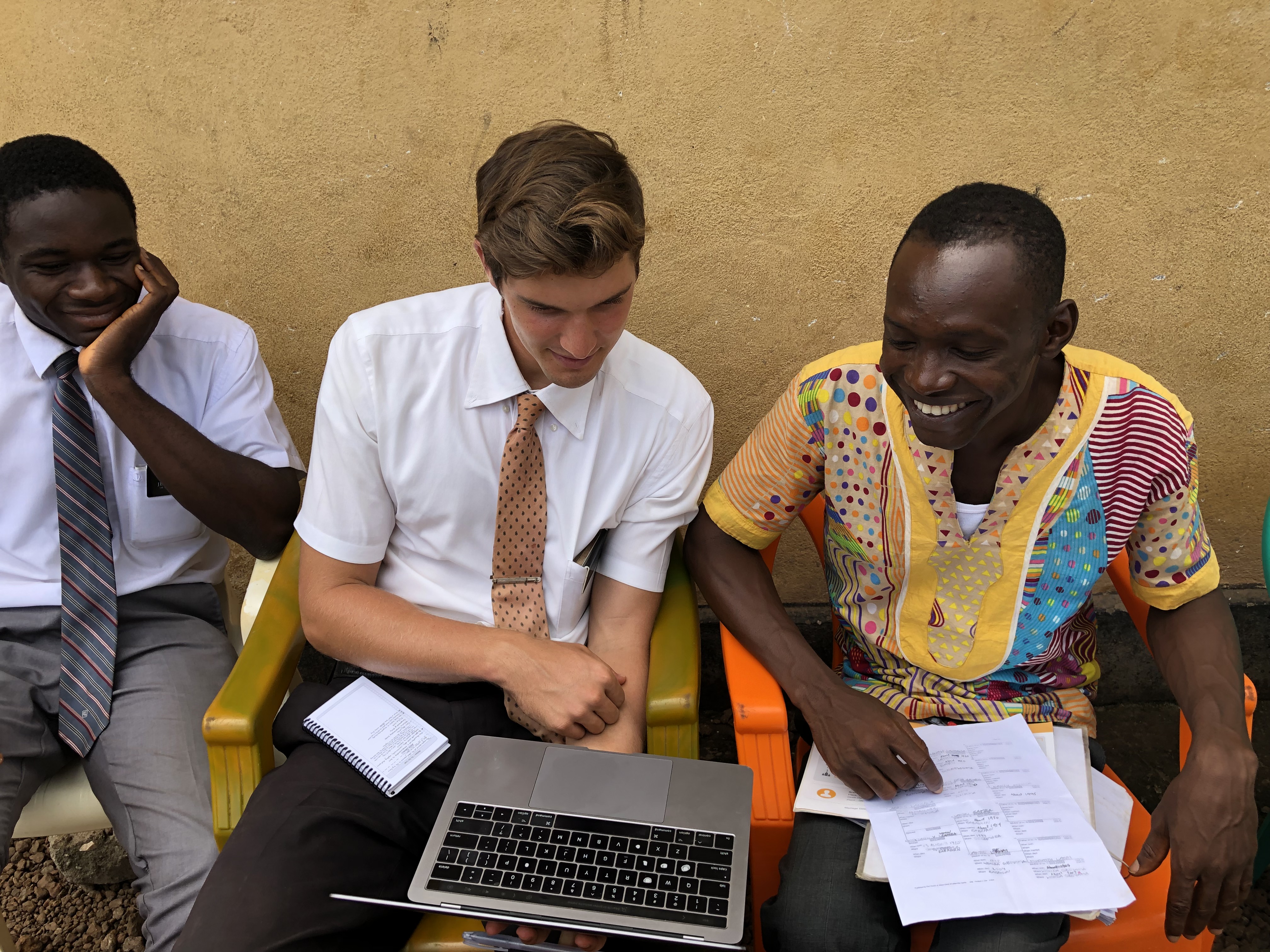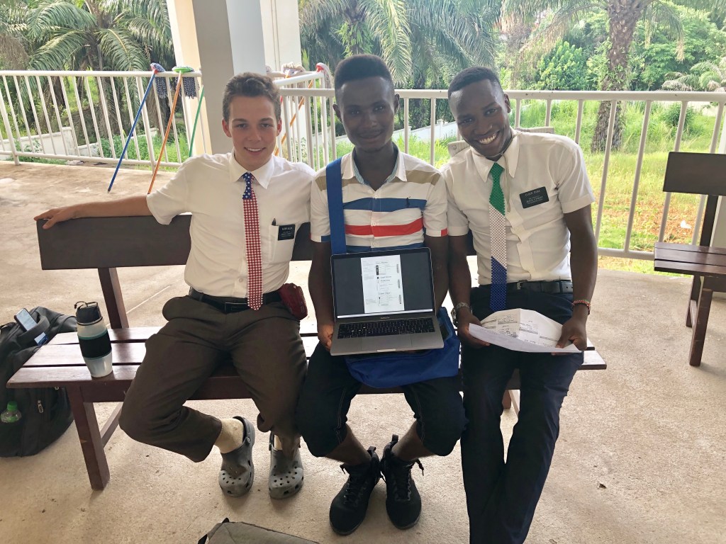 Since we were waiting anyway and we still had the computers, we pulled them out and Elder Allen and Elder Dube worked with Gabriel to input the names. In the short time that we had before the activity started (about 45 minutes), Elder Allen and Elder Dube were able to input all of his names and get them sent to the Family History elders to send to the network of returned missionaries from Sierra Leone to have the work done in temples around the world. In total, they submitted 6 more names and 27 temple ordinances. We were so happy to be able to use this “delay time” productively!