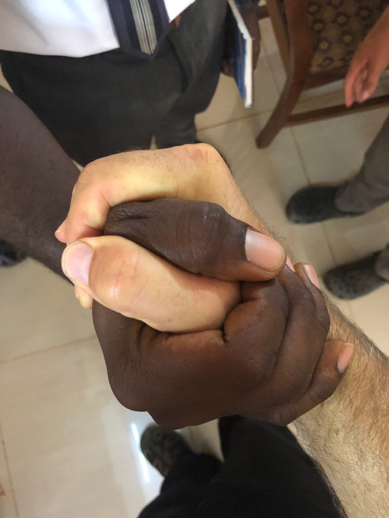 Shortly after noon, we left the apartment and met the Hangha Road elders at their apartment and then drove together over to Abass Lansana’s home.