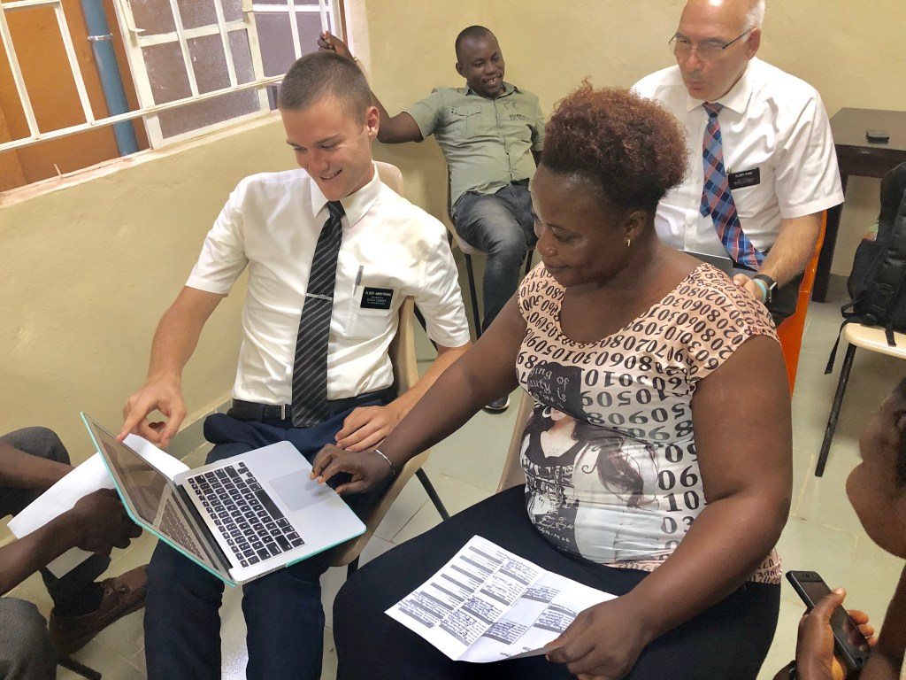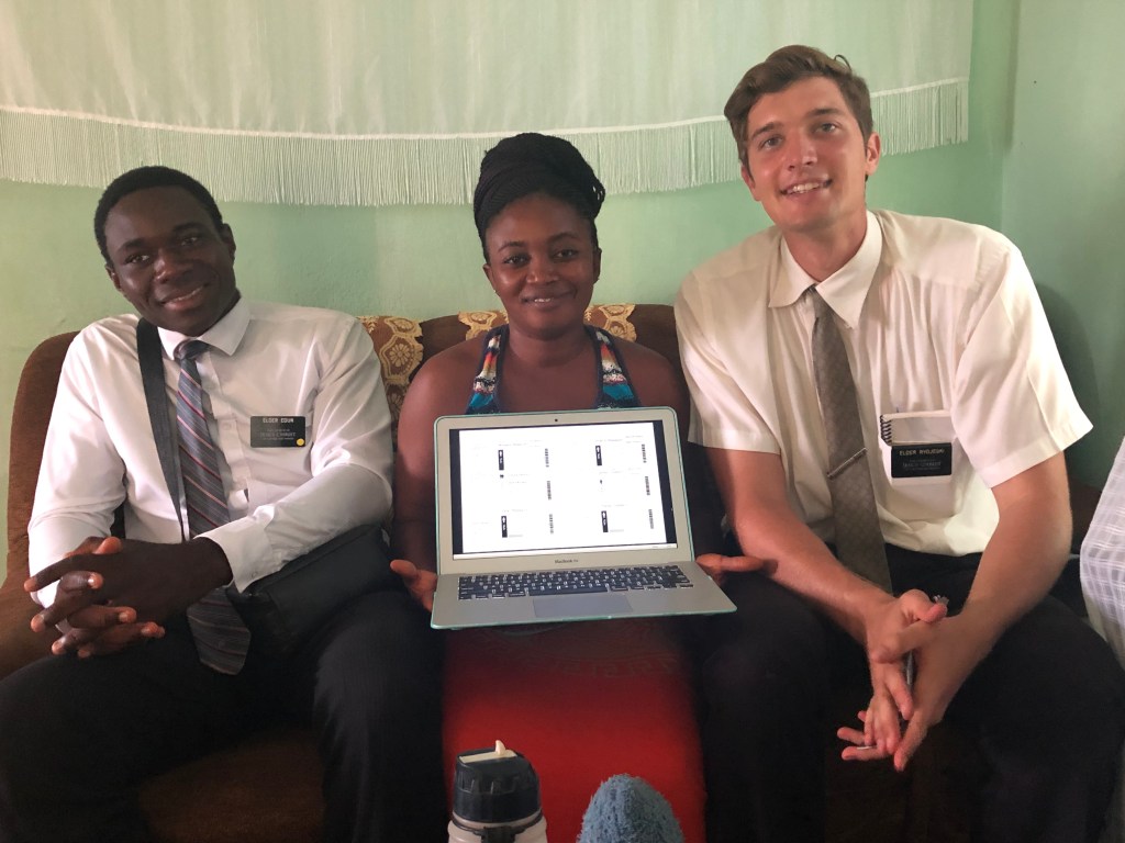 In the afternoon, at 3:00 pm we went with the Hangha Road missionaries (Elder Rydjeski and Elder Edun) and visited with Elizabeth Massaquoi. She had gathered names back to some of her great grandparents. With Elder Rydjeski inputting the information and LaDawn and I helping to sort the information to get correct dates, we were able to get it finished in just over an hour. During that time she was able to submit 13 names consisting of 43 temple ordinances. She was thrilled and so were we as we could feel the spirit of Elijah and the joy she felt as she brought this exalting ordinances to her family beyond the veil.