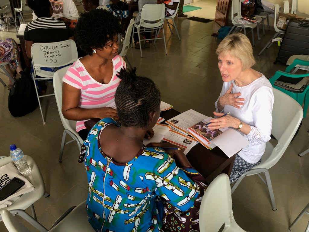The training was based on a wonderful new Teacher Training Guide and new Teacher Training workbook.  Cason and Melissa did the training, using various literacy videos that were filmed during their trip to Ghana and Sierra Leone last November. Sister Bingham participated in the training as if she were a teacher, learning alongside everyone else.  The day was long, starting at 9 am and ending at 4 pm, but very helpful in terms of giving the teachers a full understanding of their role, the materials, and how to help the learners progress.