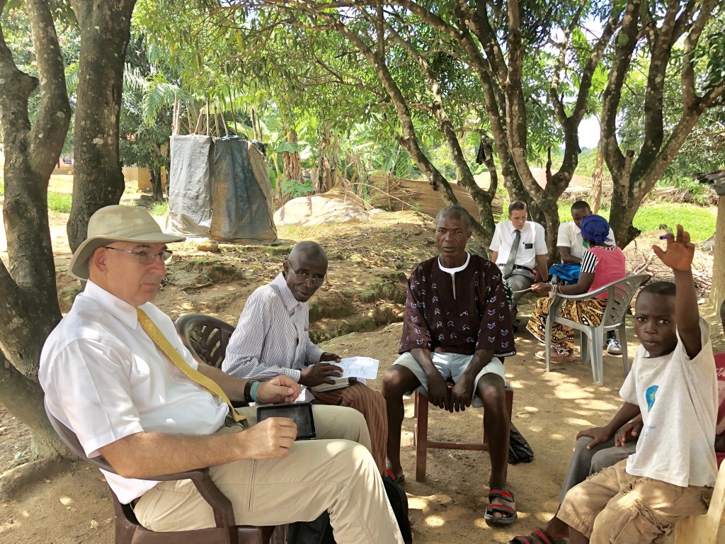 (LtoR) Me, John Charles, Sahr Lahai, Elder Allen, Elder Dube and Sahr’s wife in the background. A random young man with his hand raised