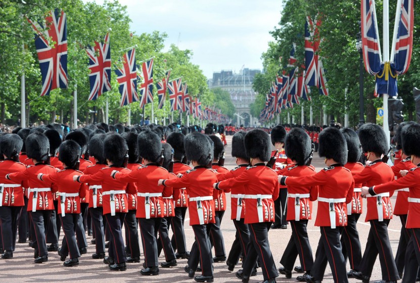 This begins at the forecourt of Buckingham Palace following a march by the detachment of the Old Guard from St. James’s Palace and the new Guard led by a Regimental Band from Wellington Barracks. The ceremony lasts for approximately 45 minutes. There are five regiments of Foot Guards that provide the Queen’s Guard, all easily recognizable in their bearskins caps and scarlet tunics. The musical support is provided by a Regimental Band or Corps of Drums with pipers. The Guardsman participating in the ceremony are trained infantry soldiers, who in addition to their combat role undertake these additional ceremonial duties. The Changing of the Guard usually takes place at 11:00 am each day. There is no cost to observe the ceremony. (Reference: Changing-Guard.com)