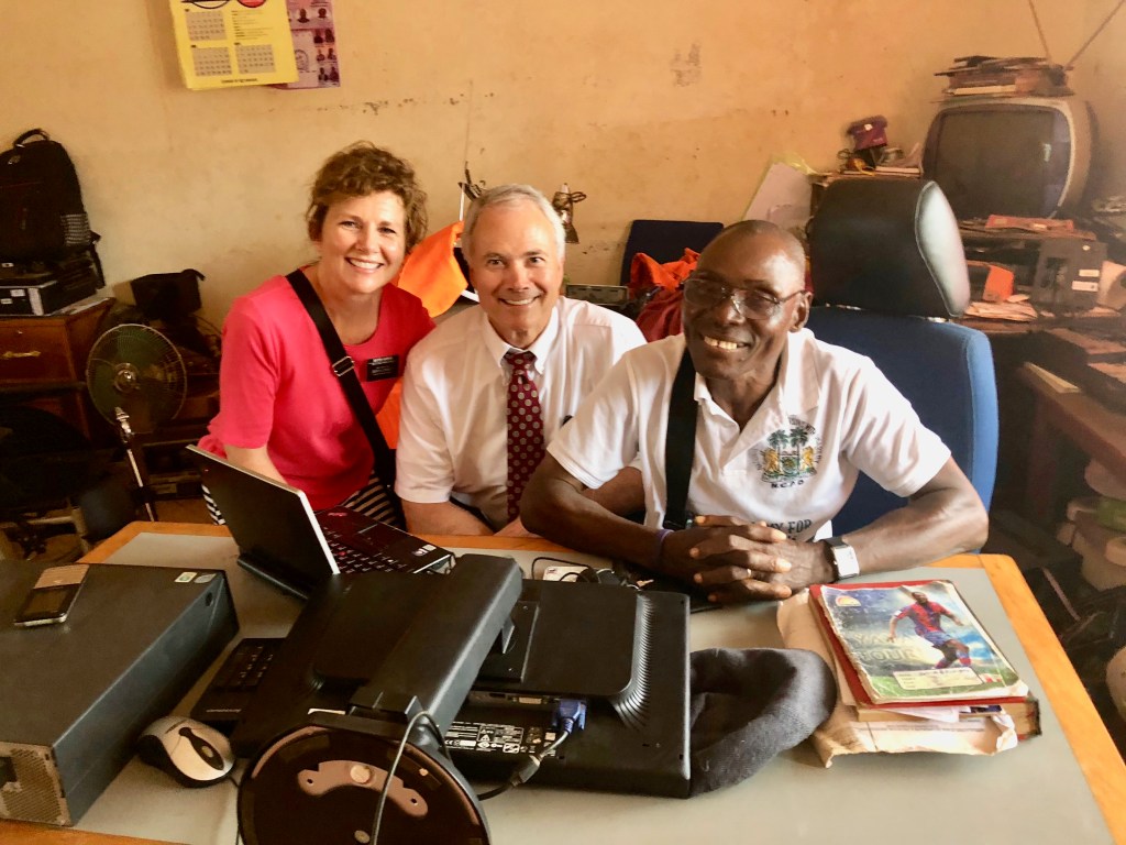We were very proud of their effort. Dauda Town was good, but due to two of the missionaries sleeping without mosquito nets, they did not win the prize. It was about 10:30 am when we got back home and then the apartment turned into a revolving door with lots of comers and goers. One of our roles is to pay several people at the start of each month for work they do for the mission. In addition to that, Junior Bendu brought the burned out compressor controller from a solar freezer from one of the apartments in Bo. Momoh Swaray (one of the pre-mission boys) came over because he discovered they had misspelled one of his “unused” names by one letter on his passport. We talked through the options and decided it was easier to just change the spelling in the church record system then it would be to get another passport. Passports are good for 5 years and then you have to reapply. Since the misspelled name is not one that he uses, it seemed like the best solution. He felt better after he left.