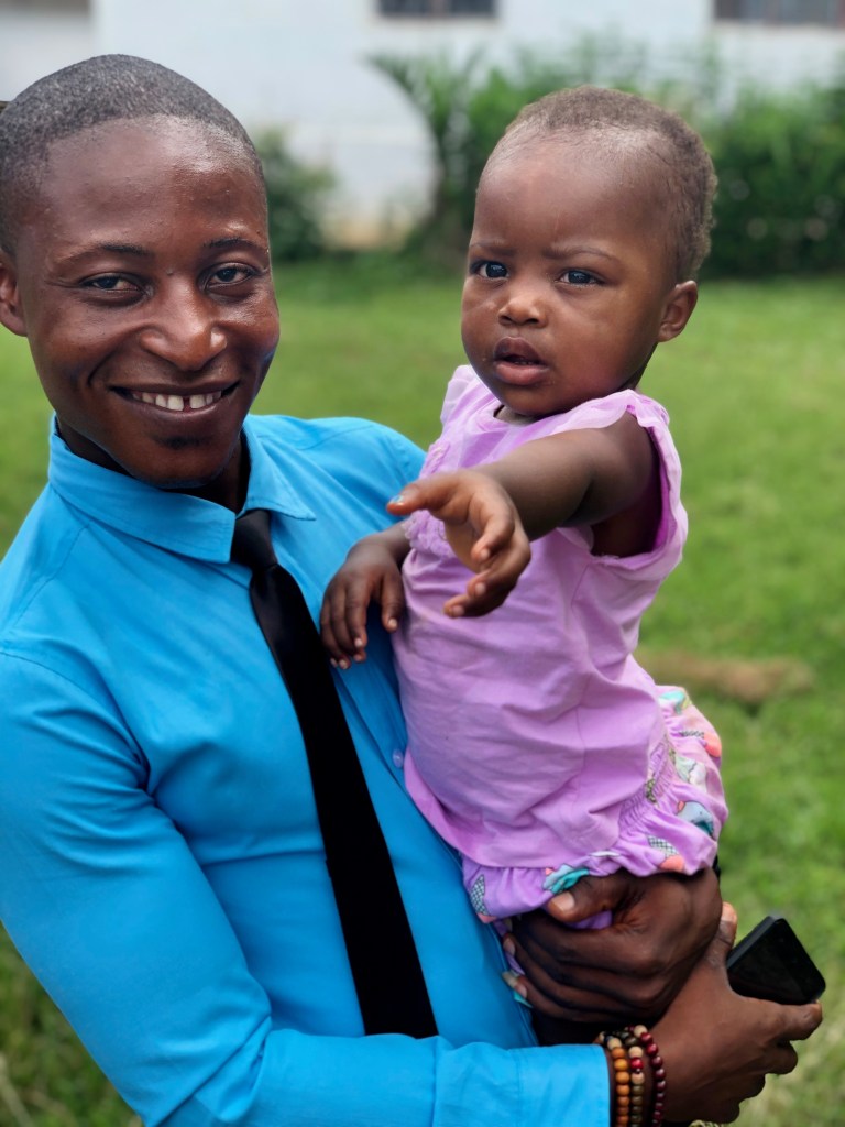 By the time we stopped and parked, people were all around us.  As we opened the doors and stepped out, many people we had never met came up and hugged us and thanked us over and over and over again.  Abdulai, was among the first.   Such gratitude!  Such joy!  It was easy to know that they had all been praying for little Grace.  We knew there was great faith being exercised on behalf of this little girl within the members of the church in Tongo, what we didn’t fully appreciate was how much faith was being exercised by the little community of Bomie Park where they live.  We also didn’t fully appreciate the impact Grace was already having on non-members who became interested in the church because of her surgery in America. One of those is Moinya and her family. If you have been following this blog, you will know that we have been teaching Moinya, her daughter Esther and other family members John, Sahr and Hanna. We learned from Rebecca that Moinya is her good friend and that she has “come to the Church” because of Grace. This was new information for us, but explains much as Moinya and her family suddenly became interested in the Church about 5 weeks ago. Being around so many grateful and welcoming people we again realized in those moments that we were truly representatives of Jesus Christ.  People were thanking us as though we had done this great thing, but we were only representing Him at whose hands this miracle occurred.   We will be the first to say that it has been like a dream in which we had a role.  Our job was to seek for, understand and then follow the promptings of the Spirit of the Lord, but the heavy lifting was left to higher powers.  All glory to God the Father, his Son Jesus Christ and the inspiration and influence of the Holy Ghost throughout the last six months.  Rebecca and Grace are finally back home.  Healthy, happy and filled with faith and hope for the future.