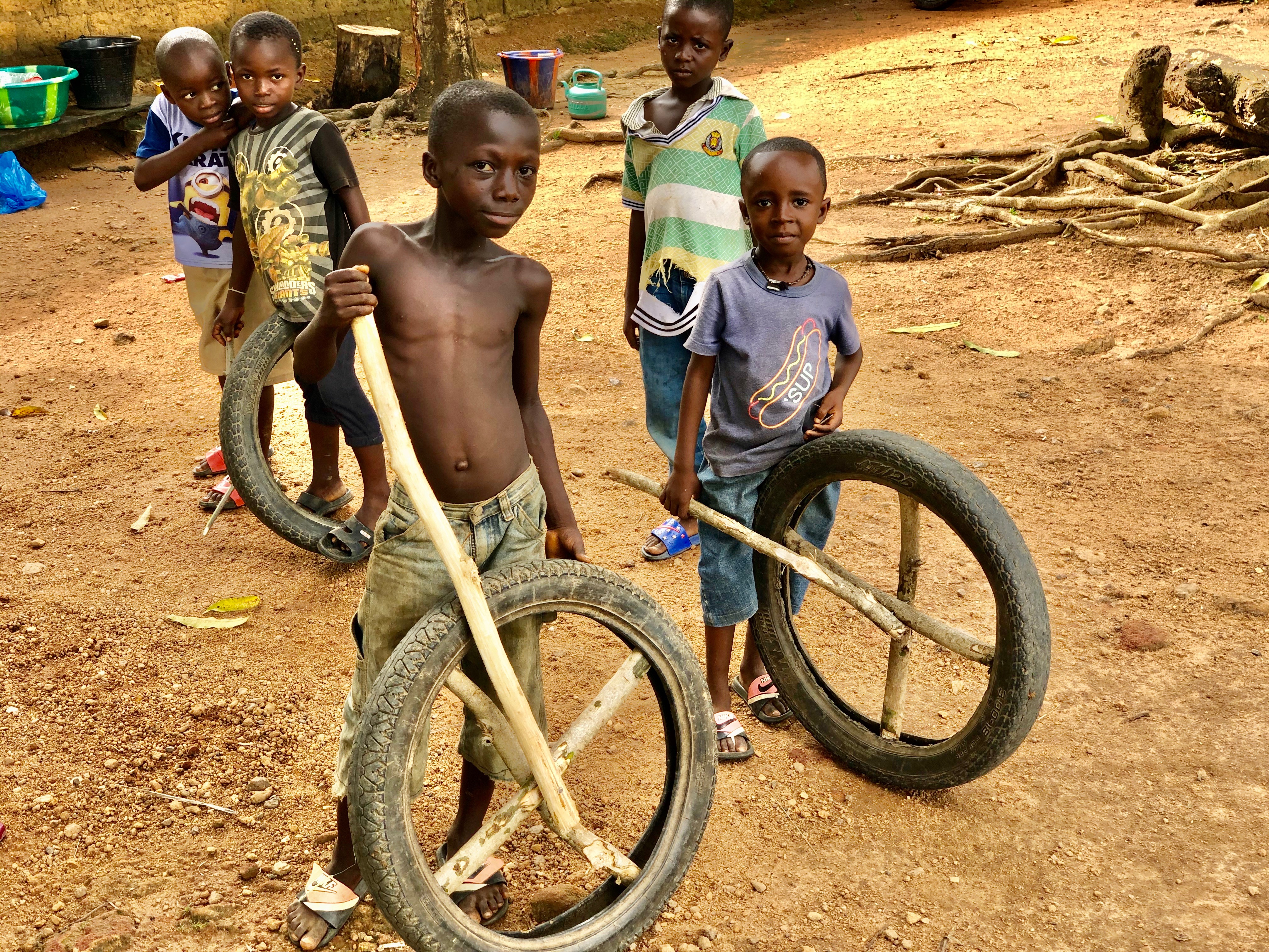 Top left – boys “riding the tire” at the Kanu’s with their upgraded tires. Below that is Elder Hansen teaching Agnes and Emmanuel and below that is the teaching of Moinya and her family. To the right is a picture of Sahr who is part of Moinya’s family. Bottom left is the road to Tongo (a challenge right now.) Bottom right is Elder Hansen teaching Steven and Joseph. Above that picture is Elder Hansen teaching Sama and Samuel Kanu. Marie, Joseph and Sarah (already baptized are on the right side of the photo.)