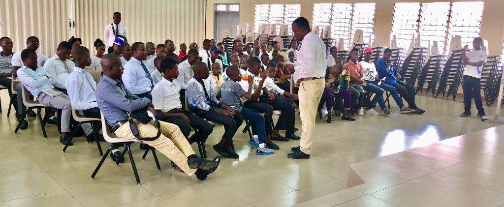 John Martin Sesay, is the district young men’s president. He had been asked by the district presidency to have an activity for the young men before the end of the year. John Martin is a returned missionary, committed to the gospel of Jesus Christ and his calling, and has been diligently working with the branches to increase the emphasis on the young men specifically. Ibrahim Kanda, a young man in the Simbeck Branch, was selected as the Aaronic Priesthood holder who would conduct the meeting. Brother Sesay also arranged to have three branch presidents talk about the duties of each of the Aaronic Priesthood offices, with an expectation that each would work with a deacon, teacher and priest (respectively) from their branches as part of their presentations. Seeing the involvement of these young men is a reminder to all of us as to just how capable our youth are. This new youth program is based completely on the premise that our youth can receive personal revelation to discover areas they need to improve on and then create a plan and follow through with actions and reflections. It will take some time to get this program up and running in Sierra Leone, but the meeting on Saturday was a big step forward in the right direction.