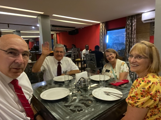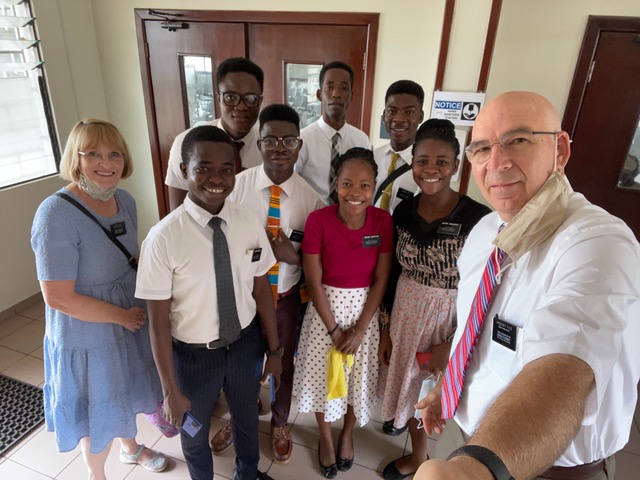 On Saturday afternoon the Allred’s finally were able to get a flight from Accra to Kumasi. The day delay was unnecessary, but due to the lack of a good process for receiving senior missionary couples that are not staying in Accra, it happened. Since we are the only mission where the senior couple flies out of Accra, the process is non-existent. With help from a member of the area presidency (Thank you Elder Klebingat), the problem was solved in a day so that it will not happen again. How grateful we were to receive the Allred’s after 2 days in Accra. We had planned to take them to Techiman on Saturday and stay with them for a couple of nights so they could get acclimated, but the delayed arrival caused us to change our plans. For dinner on Friday we went to the Noble House restaurant and had some delicious Chinese food. Might be our new favorite place! After getting home, the Assistants came over and we finalized the agenda for this week’s zone conferences.