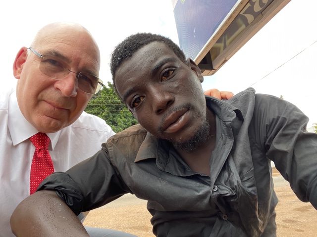After what seemed like an eternity (I sure it was only a minute or two), he snapped out of it and let me help him off the road to a block of cement where he could sit. He told me he was having a seizure and that as soon as I touched him, he came out of it. He had bitten his tongue badly and was dirty and thirsty. I asked the fruit stand lady if she had water, she said no and pointed me across the street to a man. A woman, who had been watching, walked across the street with me to show me where to get the water. As the man opened his cooler to get me a bag, I reached for my pocket to pay him, he immediately refused it and said take it. He too had been watching. I went back, gave the man the water. He first washed his hands, and then drank a small amount. I asked him his name, he told me it was Andy. He said he was epileptic and needed to get medication. I asked him where he lived and he told me. I asked him if he knew our church and he said he was familiar with it. I told him next time he sees missionaries to stop and ask them about why a tall white guy would stop and create a spectacle to help him. I helped him with resources to buy the prescription and get a taxi back home and sent him on his way. People who had now edged closer came thanking me for helping him. Something they could have done themselves but were afraid. It was just one more evidence to me that people want to be good and do good, but often are afraid to get started. And that is why we are here “Together in Ghana”.