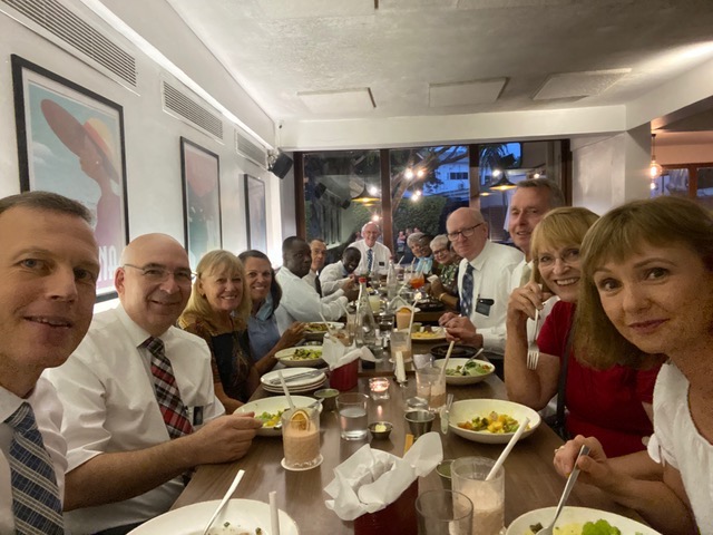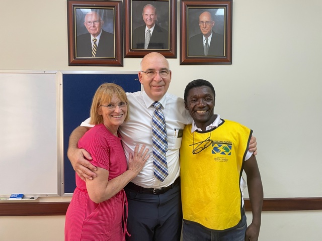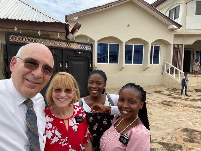 I returned home around 8:30 am, got cleaned up, finished packing, finished some email and by 11:00 am we were off to Accra for our training with the Area Presidency.  There are four new companionships of Mission Leaders this year in the Africa West Area.  President and Sister Bodhaine from North Carolina and serving in Yamoussoukro, Ivory Coast; President and Sister Akinbo from Nigeria (he has served 8 years as an Area Authority) serving in Nigeria Ibadan; President and Sister Abeo from Accra serving in Uyo Nigeria; and the Kunz’s in Kumasi.  We have met these wonderful leaders many times on zoom calls, but this is the first time we have all been face to face.  It was wonderful to get to know them and rub shoulders with these amazing men and women.