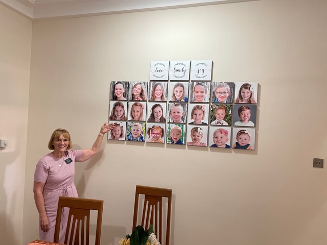 On Monday afternoon, the 9 returning missionaries came to the mission office with their luggage. We decided to host them in our home that evening. We were eager to get the pictures of our grandchildren up on our wall, so we spent about an hour in the afternoon getting that done. After returning to the mission home, I interviewed all but three of the departing missionaries (which I finished on Tuesday). We then loaded up the returning missionaries in the van and brought them to our home. We had such a delightful evening together. LaDawn had ordered roasted chicken with rice or French fries (each missionary was allowed to select for themselves) from Aboude’s. It was such a delicious meal. I realized that mixing the cole slaw with the rice and then adding the peppe sauce, makes for a delicious plate of rice!