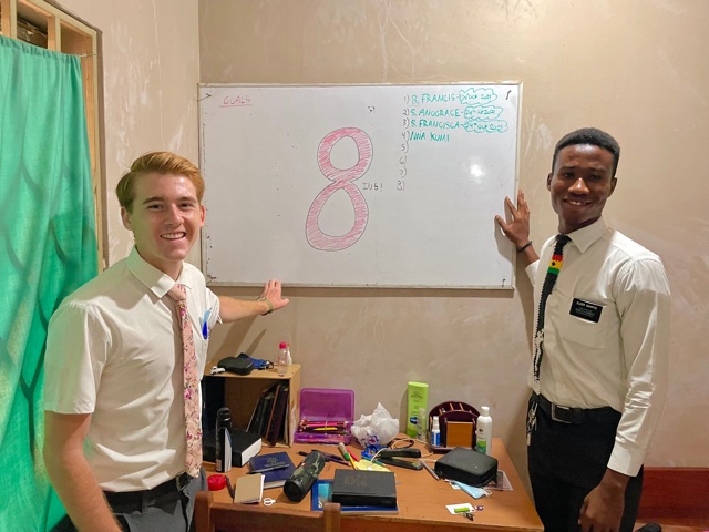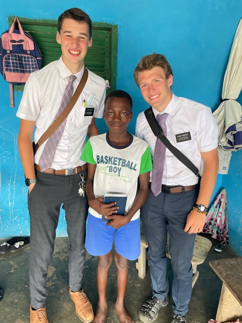 “This week has been great for us, we’ve seen seen so many miracles I don’t even know where to start, the mission conference really inspired me to be the best missionary I can be and give my all to the Lord! So my companion and I after the conference really tried to use this idea of finding the Elect and jump right in with full faith in the Lord and the miracles this week have been amazing! So we set our goal as 8 at the beginning of the transfer and we didn’t know any of them, so this week we filled 4 of those spots, I’ll start with our last one brother Nna Kumi, He came to church alone we didn’t even know who he was but he showed up last week so after sacrament we went to go talk to him and while talking to him he told us that he had been praying to know what to do with his life, and that day a member came by and invited him to church so he knew his prayers were answered so he came to church, and he told us that he wants to be baptized even though we’ve never taught him, so we told him we will teach him and prepare him for baptism by week 6 I’m so grateful for what I have seen this week, this is just one of SOO many miracles and I know it is because we humbled ourselves and put faith in the Lord.”