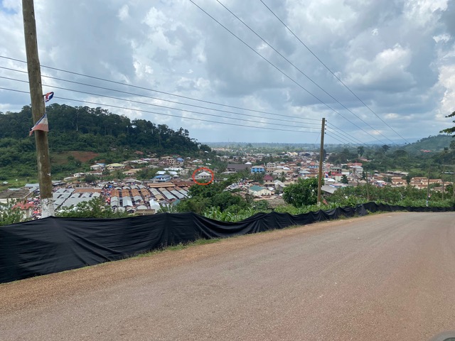 On Tuesday we drove to Sefwi Bekwi, Sefwi Waiwso and Bibiani. We participated in the Sefwi District Council in Bekwai where Elder Boamah serves as the district leader. The main instruction was a review of the mission conference. We were very impressed with the takeaways from the conference by the members of the district council. After the meeting, we decided to drive to Waiwso to take Elder Boamah and Elder Gyamfi home so we could see where they lived and the status of the recently acquired chapel. Tuesday and Friday are market days and the chapel building is right next to the chaos of the market. We snapped a picture from the top of the hill looking back down on the town and we have circled the position of the chapel. The area right in front of it and to the left is the marketplace. It was very hectic getting back to the chapel, but we managed to make it. We came back to the truck from the other side which was much easier.