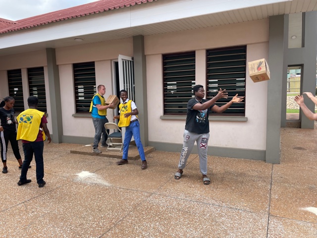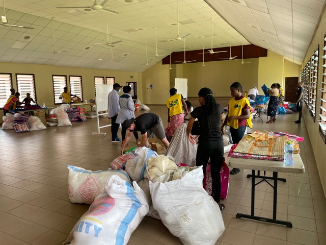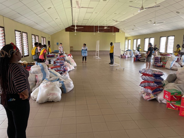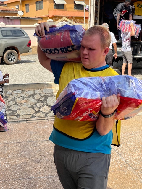 On Thursday morning we caught a flight back to Kumasi and were met at the airport by Elder and Sister Moomey. And this brings us to the second significant event of the week. This year, the kickoff for the Church’s “Light the World” campaign was held here in Kumasi on Saturday, November 27th. In preparation for that event, we were asked to provide 20 missionaries to the Dichemso Stake Stake Center at 9:00 am on Thursday (Thanksgiving), to prepare 350 bags of foodstuffs for those in need. We were also invited to identify 40 families in the Kumasi area that the missionaries knew who are in need and could benefit from this food. Now there are so many more than 40 who need the help, but we were grateful to be a small part of this miracle and be able to at least bless some of the people we work with. So when the Moomey’s picked us up were were able to travel over to the Dichemso Stake Center and witness first hand the work the missionaries were doing. It was quite amazing to see the effort, teamwork and spirit of camaraderie among the sisters and elders as they unloaded the truck and began to assemble these bags. It was a lot of work, going from 9:00 am until 3:30 pm. These missionaries were warriors! We were so proud of them and we are pretty sure many of the sisters were able to outwork the elders. We think there were some sore muscles the next day.