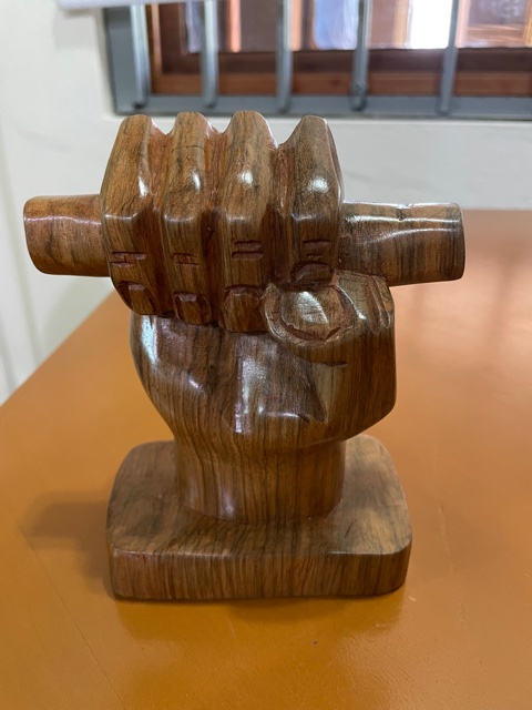 As a gift to all of the missionaries, we gave each of them two of our new vision stickers and a wooden, hand-carved fist holding an iron rod. This was to reinforce our discussion about Lehi’s vision and where we might find ourselves in that vision. Here is a picture of a large one we had made that is all sanded and polished. The ones we gave the missionaries, we sanded but not polished due to the additional cost. We do hope these mementos will be something they will cherish long after they leave the mission. We express appreciation to Rod and Melanie Hillam for giving us the idea. As we have mentioned before, they were our mentors coming into the mission, having served as Mission Leaders in the Ghana Cape Coast Mission from 2018 – 2021. The catch-phrase of the carving was attached to each one by LaDawn, “Love the Feel of the Steel”.