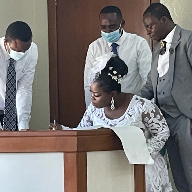 On Saturday we attended the church wedding of Lazarus and Amelia. They are the couple that we visited back on the 29th of September with Elder Nsungi and Elder Akpan. Their nine year old daughter Treasure had been baptized already, but they had to get married first, and that took some effort given the traditions here. It was so wonderful to be with them on their special day and be able to be a witness to the event. They had a traditional marriage the previous week and so were able to be baptized on Wednesday of this same week. They were confirmed on Sunday, the day after their wedding.