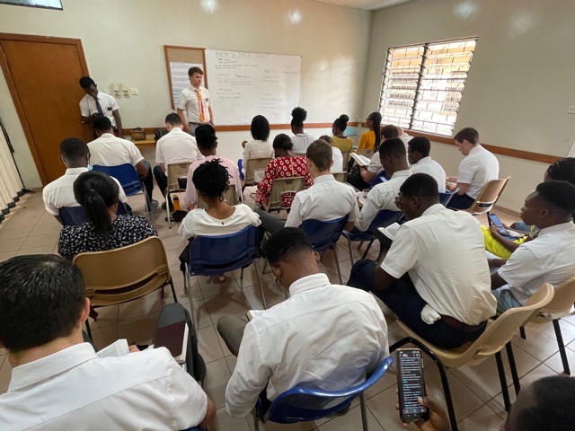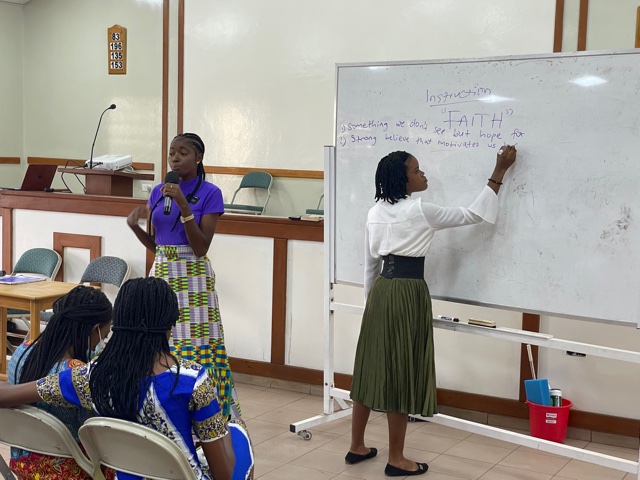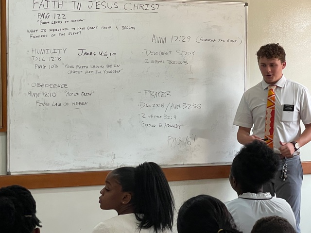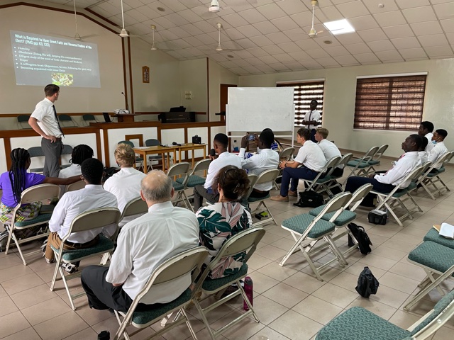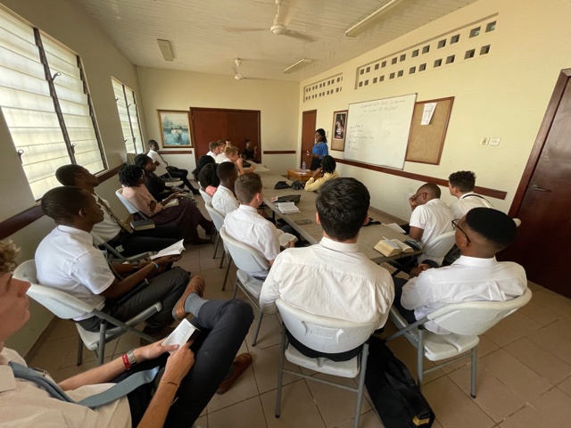 On Wednesday, we traveled to the Bantama Stake Center and met with the Asuoyeboa and Bantama Zones. The focus was the same, increasing our faith in Jesus Christ. The zone leaders in Asuoyeboa are Elder Riley and Elder Abekyi. The zone leaders in Bantama are Elder Degelbeck and Elder Boamah. The Sister training leaders that support these two zones are Sister Vandy and Sister Edigin. We first had the Sister Training Leaders provide some instruction and then the two zones broke out and the zone leaders took over.