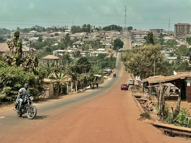 There were 40 people in attendance, but only 13 of them were from Agogo. Most of them currently attend the Domeabra branch which is about 20 minutes this side of Hwidiem. After sacrament meeting we went for a drive to get a feel for the actual town of Agogo. Having never been there before, we were surprised to discover just how big this place is. As home to two significant universities, Agogo is, according to some locals, a city of choice for many. Below are some pictures of the city, including Elder Brigham and Elder Dibatayi who have been serving both Domeabra and Agogo. Also a picture looking into the sacrament meeting from a window outside.