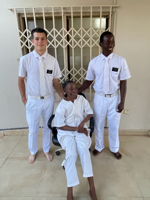 “We’ve been teaching the friend of a newly baptized convert. Her name is Lillian. One day she asked us to come teach her at her house. When we got there we walked in and there was an older woman laying on this couch/bench. And she sees me and says “I know you”. I was very thrown off, but I asked how she knew me. And she proceeded to say in Twi that she had met me before a while back and that I gave her a book. She had her granddaughter get “The Book” and it was a well used copy of the Book of Mormon. So I now knew that she had met the missionaries before. On the front cover of the Book of Mormon were the names of Elder Westfall and Elser Faulu. These two missionaries planted a seed in this woman’s heart and soul, because she told us that she has had her granddaughter read and translate the book to her ever since she got it, and she wants us to teach her. This was really crazy how we met her, and definitely not a coincidence. In one of our visits while we were teaching her she asked a question that really hit me hard. She asked “I think I’m going to die soon, and I’m scared that I will die before I’m able to be baptized and receive the Gift of the Holy Ghost. What will happen to me if I die before I’m baptized?” Wow, this hit me so hard. But it showed her desires, and with the help of the spirit I was able to teach her the plan of Salvation and touch on baptisms for the dead. During our meetings with her I have felt the spirit more than I have with any other investigator yet on my mission. And during one of our visits/teachings with her she asked us if we can help her get baptized. So we told her we can, but there are some complications with her condition. She is very frail and fragile and she has no use of her legs. So she can’t really move. She has not been to church in a long time, let alone able to leave their house. The only movement she gets is when her daughter and granddaughter move her from the bed to the couch/bench. President, my testimony has grown tremendously in this short time of teaching her. And for the first time on my mission I feel I really have a need to help this lady receive salvation. I don’t feel like I just want to help her become a member of our church, or baptize her to hit our goal. But I really want to help this sweet old woman in receiving the salvation she desires. I don’t know if I have felt the spirit stronger with anyone than I have teaching this woman. And it truly is a miracle in how we found her, and that Elder Westfall and Elder Faulu were prompted to give her a Book of Mormon so she could be prepared for my companionship now. “