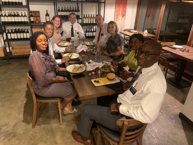 That evening, President & Sister Young of the Accra Ghana Mission invited us to dinner along with President and Sister Bassey of the Nigeria Port Harcourt mission and President and Sister Morrison of the Ghana Cape Coast mission. President Morrison was just called as a General Authority at the April conference in Salt Lake City. We had a lovely evening at Bistro 22, a popular western style restaurant in Accra.