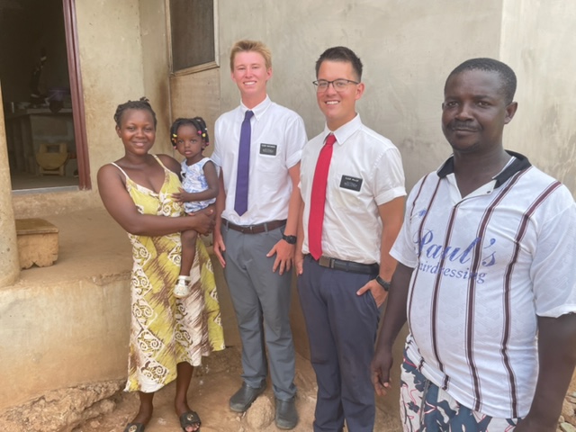 On Sunday, we attended the University Stake Conference. We love to be with the leaders of this dynamic and fast growing stake. More importantly, we love to be with the missionaries! The conference was great. The talks were solid and inspiring and the choir sang beautifully. A wonderful way to spend a Sunday! Following the conference, we made a quick stop at home and then we were off to visit a family in the Korforidua Branch of the Bantama Stake. Felix and Teresa are parents of three beautiful children. Teresa was ready to be baptized on Sunday until her Father called her and said if she joined the church he would disown her. She felt like she needed to honor his wishes, at least until she could explain to him why it so important to her to be baptized into the Church of Jesus Christ of Latter-day Saints. We went with Elder Buchanan, Elder Miller and Brother Emmanuel, the first counselor in the branch presidency. We had a wonderful visit and pray that this amazing little family will be able to find their way to the waters of baptism so that they can enjoy all of the blessings they have come to love and seek.