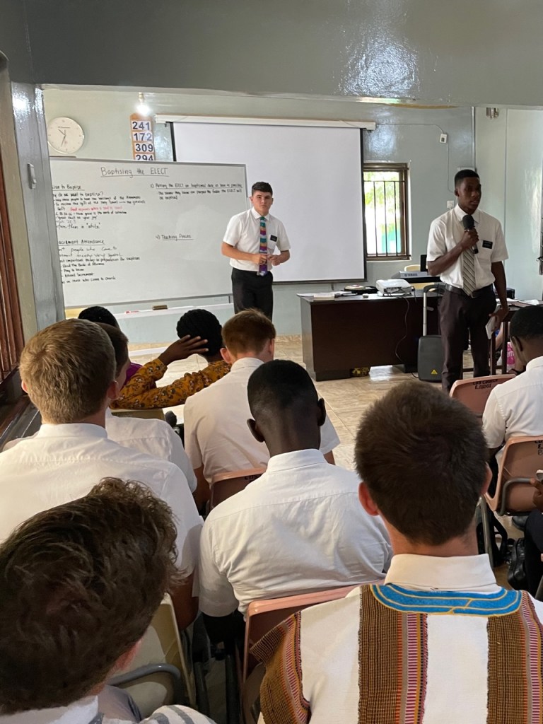 It was such a great conference. The missionaries were attentive and eager to learn. We had an outstanding day with these two zones. Following the conference, I completed 8 interviews, saving the rest for Friday morning. After the interviews, I was pleased to have a few minutes with President Asare-Boahen, our new District President in Sunyani. I am so impressed with him and the amazing energy and perspective he is already bringing to the calling. I was also able to extend a calling to his new second counselor (formerly the district clerk) and his new district clerk (formerly the assistant district clerk – a young man who has only been a member for 14 months).