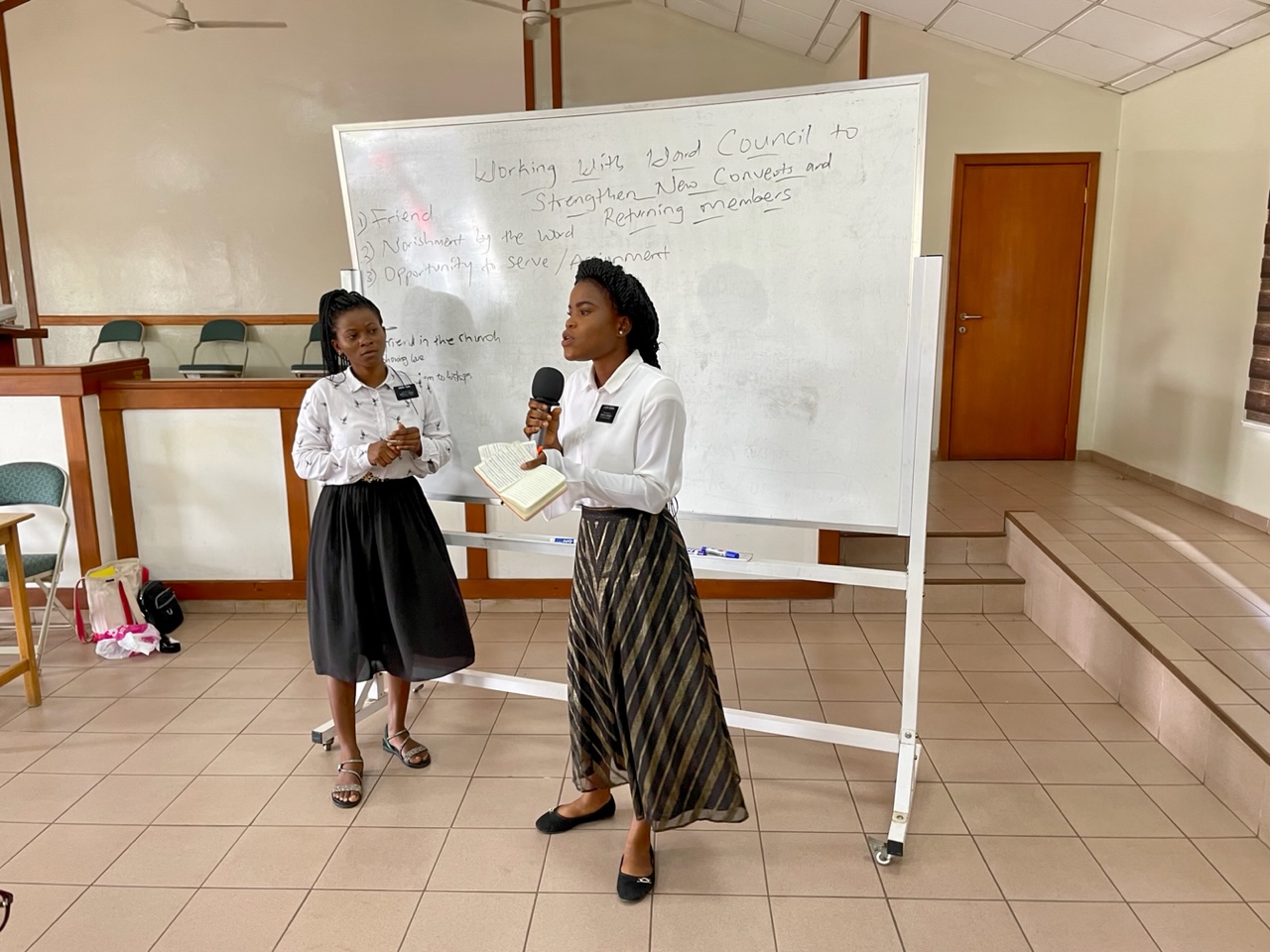 We then had the Sister Training Leaders teach about Convert Retention using page 217 in Preach My Gospel which talks about working with the Ward Council to Strengthen New and Returning Members. At the heart of this is President Hinckley’s counsel that each convert needs three things: 1) A friend. 2) An assignment in the Church. and, 3) To be nourished by the good word of God. Each set of Sister Training Leaders did a remarkable job of teaching these principles. In Tamale, the Steinmetz covered the topic perfectly. Unfortunately I did not get a picture of the Steinmetz’s or the Techiman Sisters (Sister Freeman and Sister Annan).