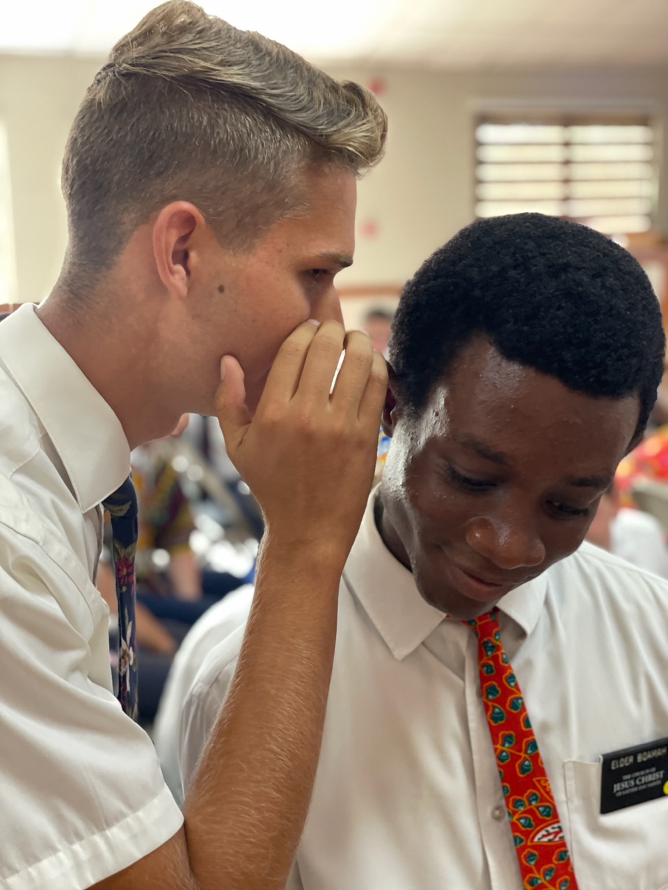 In our zone conferences this time around, one of the highlights was the instruction that LaDawn provided on Gossip. We don’t know if all missions struggle with this horrible habit, but we know that the Ghana Kumasi Mission has improvement in this area that needs to be made. It was eye-opening for the missionaries to see how quickly a simple message gets confused when information about other missionaries are passed along throughout the mission. In each conference, LaDawn selected a group of missionaries and had them play “Chinese Whispers”. While we have asked missionaries not to be talking to other missionaries in the mission, some cannot help themselves – and it causes pain for many. It is something we really want to curtail because we know the value of missionaries focusing on the purpose rather than on the latest juicy tidbit about another missionary (which is almost always completely false). LaDawn started by writing down a simple phrase and then having the missionaries whisper it to one another in a small elongated circle. “People who know me would say my best quality is my unwavering optimism.” In a couple of conferences, the word “people” actually made it to the end, but any similarity between the start phrase and the end phrase ended there.