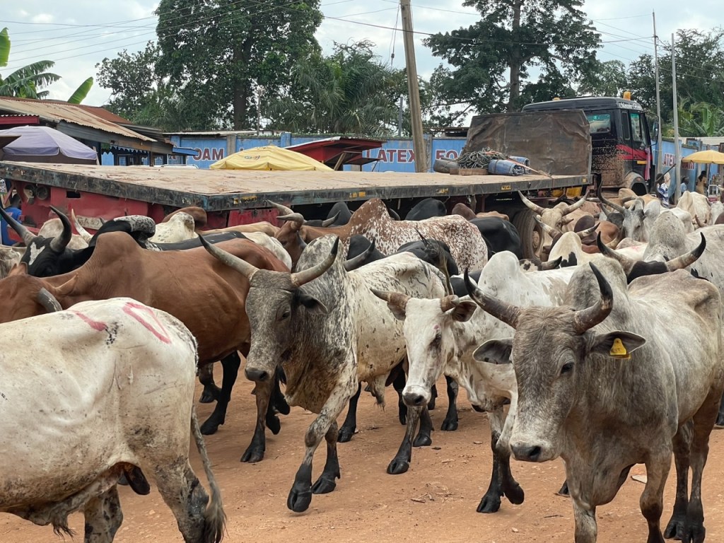 Once a month on usually the first Monday of the month we hold a mission health council with the Area Medical Advisor, the Moomey’s and ourselves. Our gratitude for the work that Elder and Sister Moomey do to keep the missionaries healthy continues to be significant. It is a big undertaking and we will be lost when they leave next year. Any doctors or nurses out there who want to serve a mission in the Ghana Kumasi Mission starting about April of next year? In that council we discuss those missionaries with recurring or ongoing health needs that need to be reviewed and discussed. I also meet once a month with the South Kumasi Facilities Manager Aaron Allotey. He covers the Obuasi District and the Mission Office and Mission Home. We are grateful for his service to the mission and appreciate all that he does to keep the mission and the Obuasi District humming. One more item about Monday. We ran some errands earlier in the day and as we were leaving China Mall (think of a Wal-Mart where everything is made in China) we met a herd of cows coming down the road. So we pulled over and gave them the right of way (the right thing to do as their horns were much bigger than the horn on our Fortuner). I couldn’t help but snap a picture out the window.