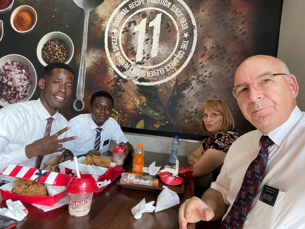 After interviews, we wanted to go out and proselyte with Elder Bai and Elder Agyare. Since it was past noon, we drove to Kentucky Fried Chicken (one of five in the mission) and treated them to lunch. When we got ready to go out with them they told us they were going to help a family dig a trench out at their farm. We dropped them at the house of the family and then went back to the hotel and worked on missionary letters. We did notice that they told us this AFTER we fed them a delicious lunch. 😊
