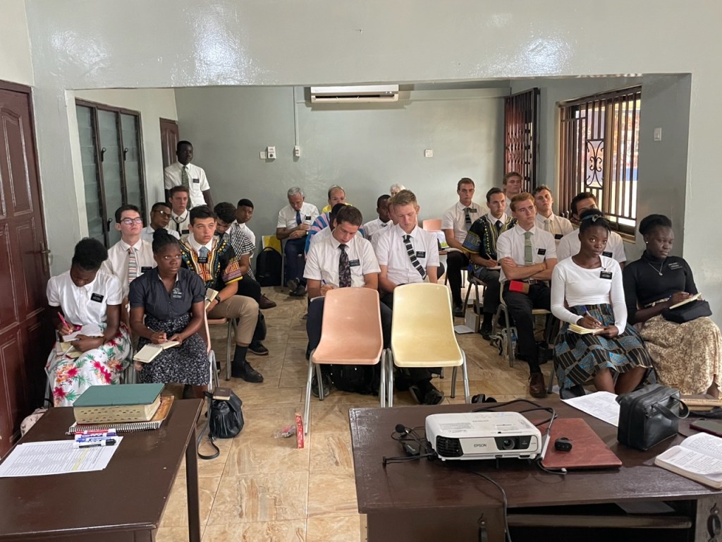 The next morning, we started zone conference about 15 minutes early as everyone was already there. We didn’t end until 2 pm and that was with an early start. But the conference is always one of our favorites. The setting is intimate as the room is smaller and everyone who wants to participate has opportunity to do so (and some who don’t want to 😊). The Assistants taught the Divine Companionship one last time and it was their best instruction of the 5 conferences (in my opinion). Learning how to make the Holy Ghost the senior companion is a powerful concept. They used many of Elder Holland’s quotes and concepts from his 2009 and 2017 talks titled “The Divine Companionship” that he gave to new mission leaders. It was excellent. Since we do not have Sister Training Leaders in Tamale, Sister Arthur and Sister Moyo gave the instruction on “Pray with Faith”. It was outstanding. Elder Walker and Elder Bangura also did a great job on “Listen”. It was a terrific conference from top to bottom. Here are some pictures.