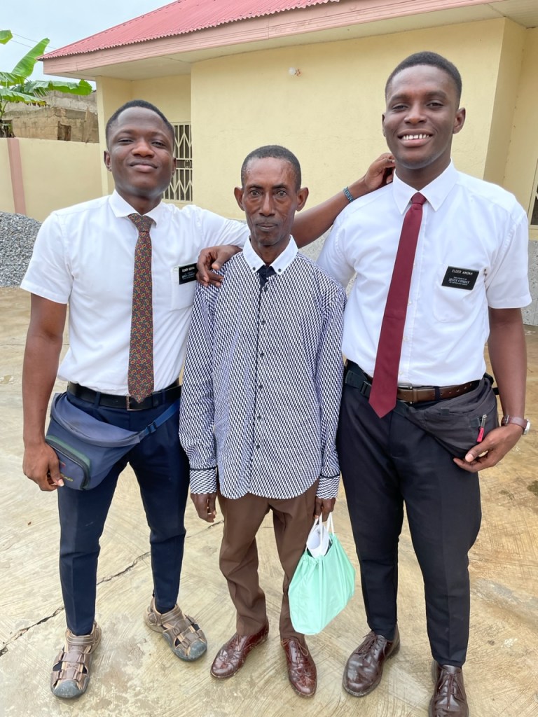 On Saturday, I met my first counselor President Edmund Obeng on the roadside near his home and the two of us drove up to Techiman. We left around 10:15 am and arrived about 12:45 pm. Once there, we were joined by my new second counselor, Joseph Asante. We were in Techiman to hold a membership council in an effort to help a wonderful man repent of some mistakes he has made in the past. While he has historically had difficultly in confessing the sin, his heart has been softening and there was such an outpouring of the spirit as he was able to finally relieve the burden he has been carrying for several years. It was a glorious meeting and far exceeded my expectations. I am so grateful for the atoning power of Jesus Christ and His ability and desire to forgive and renew the spirit of a broken hearted sinner. I am so grateful for President Obeng and President Asante. Two men who willingly gave up their time to do this important work. Working together with them is a joy and a blessing. I made sure we took a snap before we left.