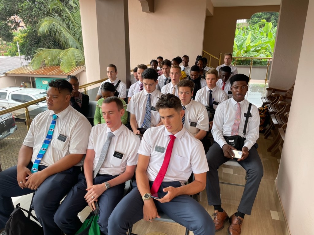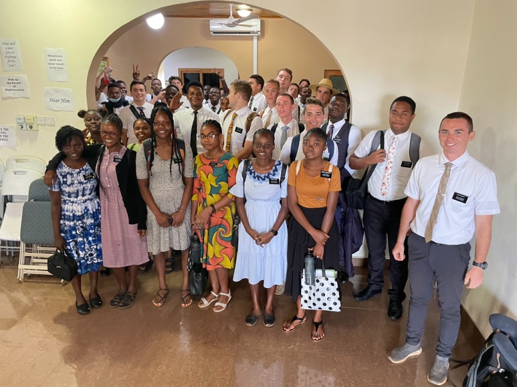 Between August 25 – September 16, 2021 we received 23 missionaries. That was our largest transfer, but it pales in comparison to the week we just experienced where we received 23 missionaries in one day. Complicating the transfer even more was that thirteen of them were French speakers, with very little English language experience. Fortunately, all came directly from the Missionary Training Center, including the 12 missionaries from DR Congo who had already been serving as missionaries in their home country for 3 – 17 months. We had one newly called missionary from Cote d’Ivorie who was our thirteenth French speaker. Here are the demographics: 8 elders from DR Congo; 1 elder from Nigeria; 1 elder from Malawi (our first); 5 elders from USA; 1 elder from Fiji (our first); 1 elder from Cote d’Ivorie; 4 sisters from DR Congo; 2 sisters from Liberia.