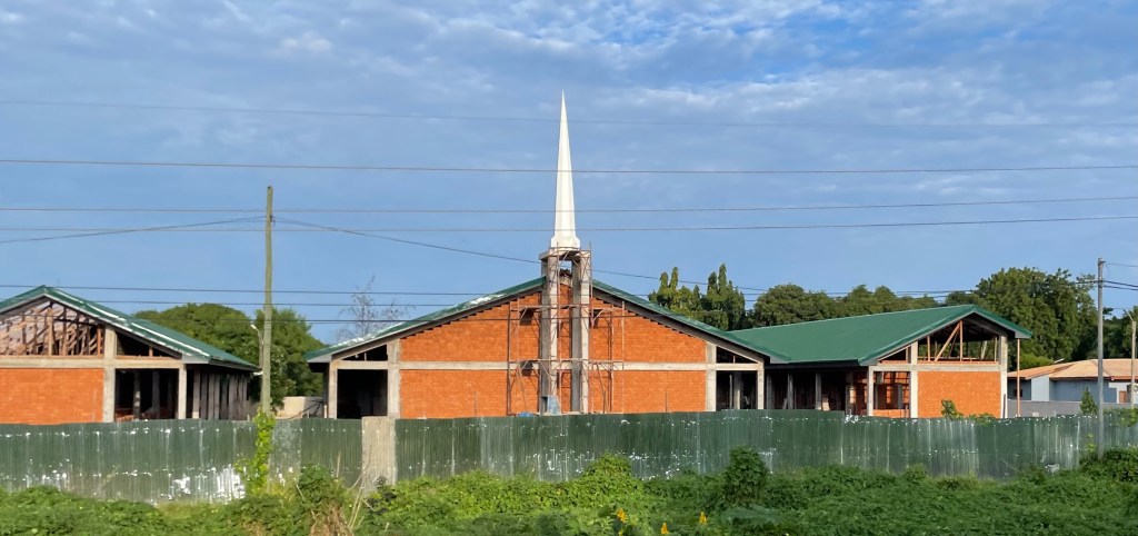 One of the things we always enjoy doing when we visit Tamale is to snap a picture of the ever ongoing construction of the new district center. Almost all of the roofs are on and the main structures complete. Their next step will be to “dry in” the buildings and begin to do tile and electrical work.