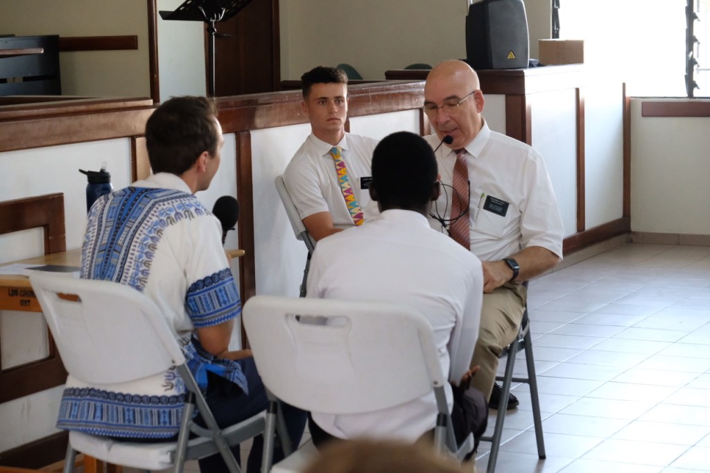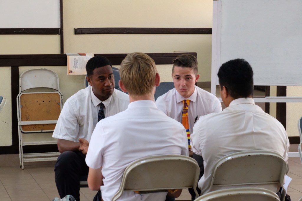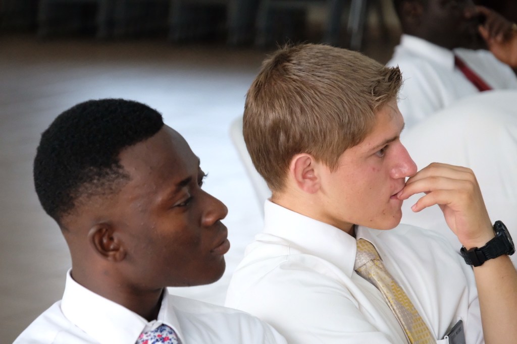 After lunch we came back to the chapel and did some role plays. We worked on helping the missionaries do two things. 1) Know the doctrines in the 42 principles of Preach My Gospel extremely well. 2) Understand how to ask good questions of those who are interested so we can come to know whether they have barriers that will keep them from being baptized in the next 5-6 weeks. We call this process “profiling”, and while in some places in the world it is a negative word, we use it to describe getting to know someone so that they know we care about them even as we get to know them better. The intent is only to use these questions as reference points in a discussion and to consider how best to get to know someone. Through our role-plays we have especially come to know the power of the questions in what we call the “love” column. These are genuine and sincere questions that tend to develop trust and relationships quickly.