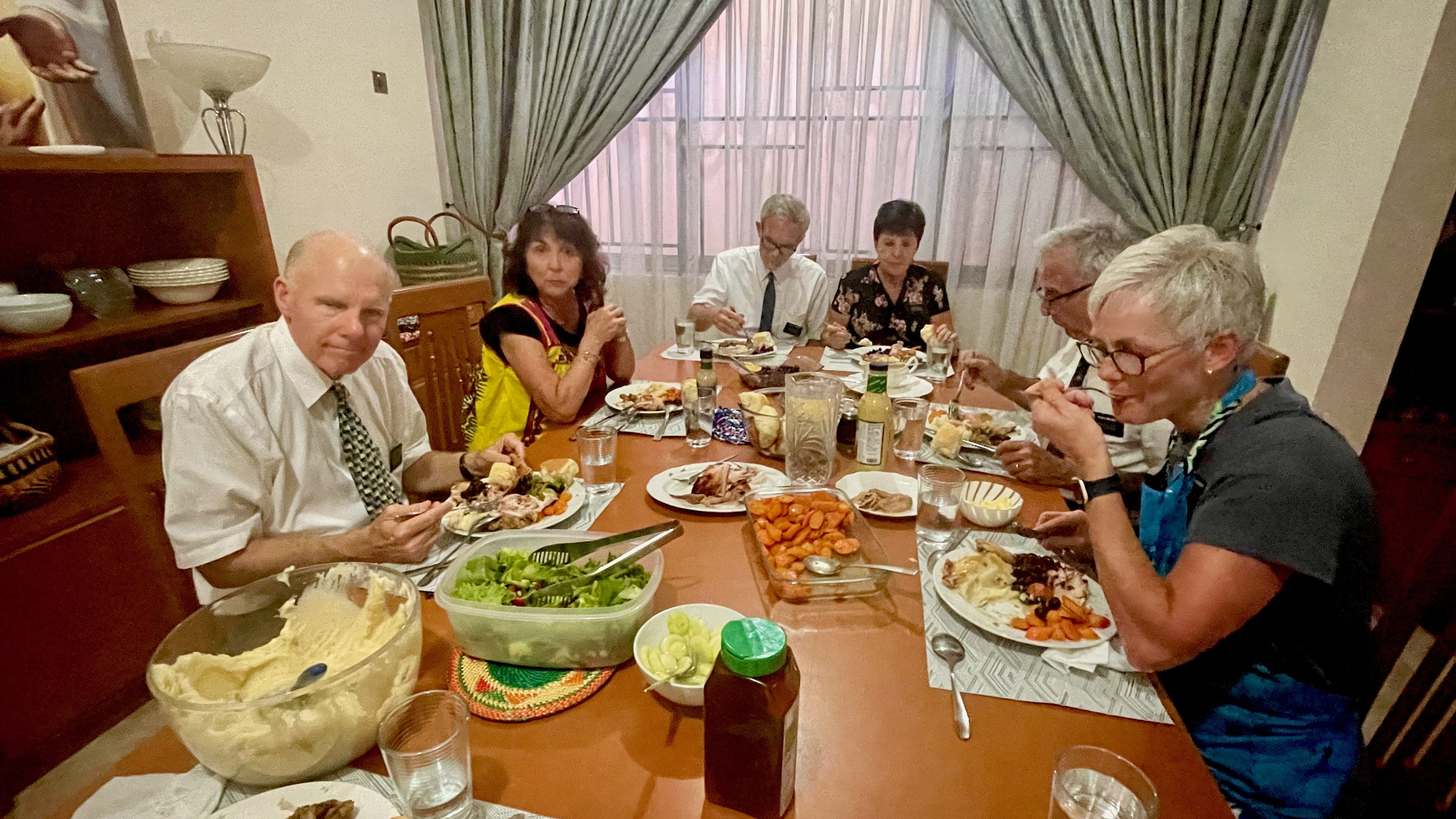 I was grateful to have both of my counselors present. President Obeng served over the Techiman branches for more than 3 years, so it was great to have him be able to come as well. We finished up around 1:40 pm and then LaDawn and I made our way over to the Thompson’s apartment where Sister Thompson fed us quick lunch, before getting on our our way back to Kumasi. We arrived at 5:00 pm and then enjoyed a nice meal with the Garrison’s and Moomey’s. Sister Garrison had cooked some chicken stroganoff and had invited us and the Moomey’s over. We continue to be grateful for all four of our senior couples who bless our lives and that of the missionaries in so very many ways.