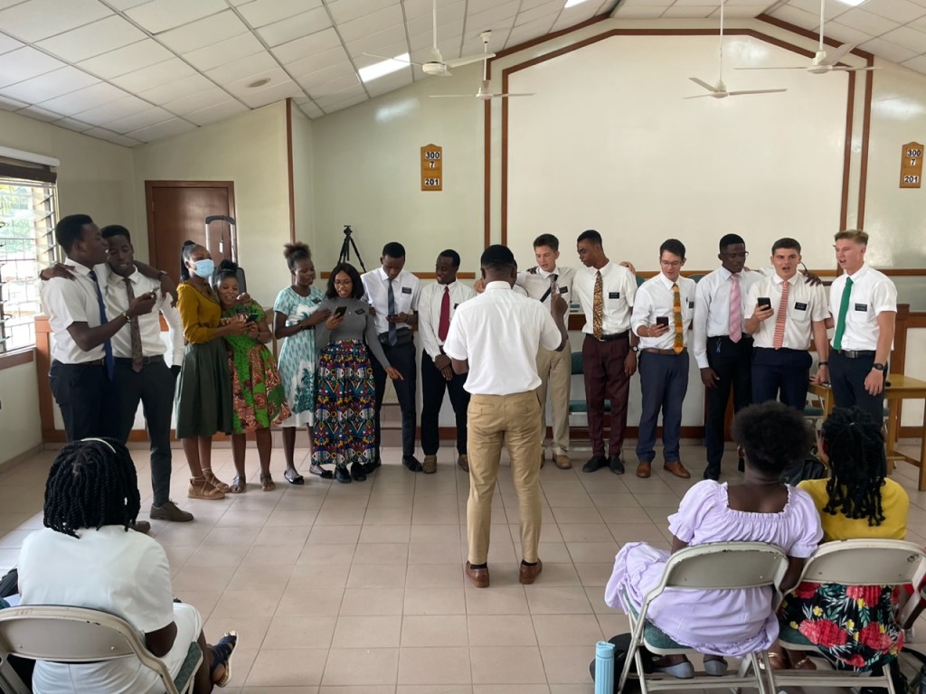 In the Dichemso / Suame zone conference on Wednesday, we only had one talent. There was a misunderstanding somewhere along the way. We were grateful to be treated to a duet by Sister Lalugba and Sister Damsa who sang “O Come All Ye Unfaithful”. They ended up representing both zones. On Thursday, we were with the University and Konongo zones and they put on a nice show with 7 different talents. At the end, the University zone did a song/skit about the 17 points of consecrated obedience to the tune of the Twelve Days of Christmas. Elder Skyles pulled that together. Very creative!