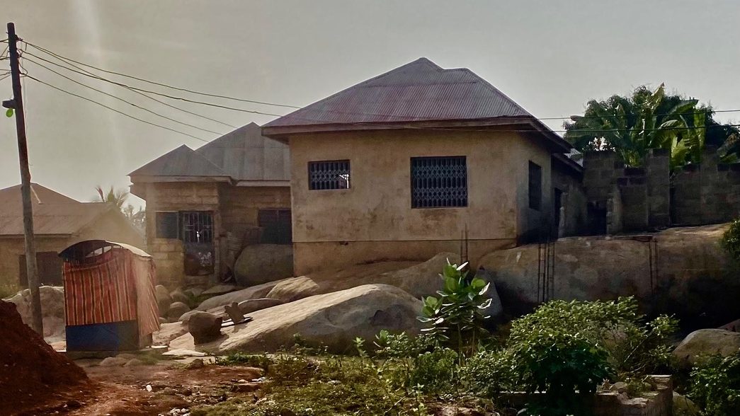 Friday was the trip to Obuasi Zone. We first drive to Dunkwa, then back to Obuasi, over to Asonkore and then we finished up in Adansi Asokwa. While we left plenty early (7:45 am), Melcom road was closed for a section and we had to take a detour. We were just following the cars ahead of us as we had no idea where we were going. What we didn’t realize is that the road winds in and among these huge rocks. In fact, LaDawn took a snap of THE HOUSE mentioned in the scriptures that was built upon a rock. We are pretty sure this is the original one. 😊.
