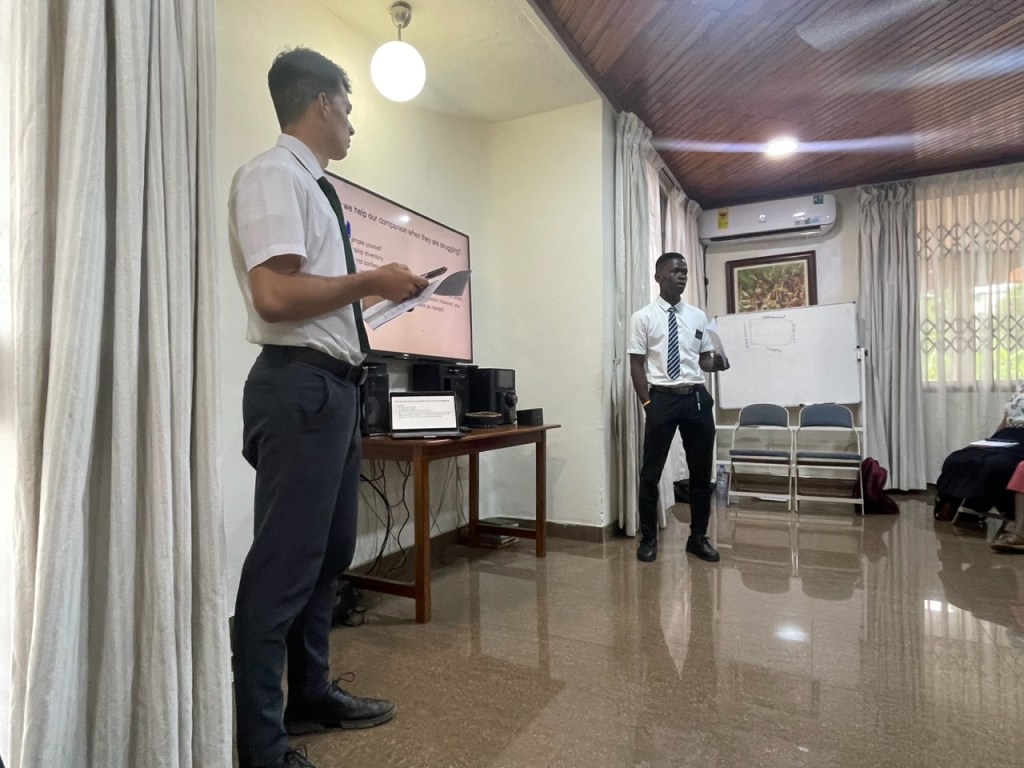 Just after 3:30 pm, I met with those missionaries departing for home going over the self-reliance presentation put together by Elder & Sister Case who stay in Accra. This is a very good summary of the resources the Church makes available for these returning missionaries to succeed in life. After the presentation, we spent about another 20-25 minutes answering questions and providing encouragement and support. For most of the African Missionaries, going home causes anxiety. We are grateful for the work of the Area Presidency for developing resources such as YSA Gathering Places where these returned missionaries can gather and learn employable skills as well as interact with each other, hopefully in search of an eternal companion. We finished around 5 pm and made our way to the Mission Home where we had a nice dinner from Aboude’s and then played some Preach My Gospel Jeopardy before ending the evening with pictures.