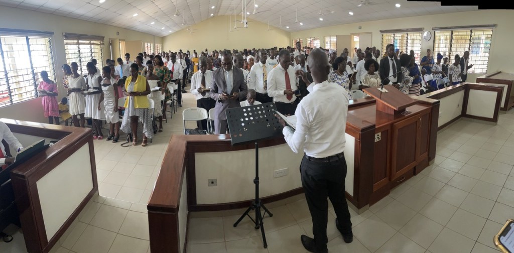 On Sunday morning we drove to Konongo for their stake conference. They have been working on an expansion of the District Center for nearly a year. We thought it would be fully complete and that everyone who came to the conference would fit into the chapel and cultural hall. Unfortunately, that turned out not to be the case. I estimated that we had about 400 people in attendance. It was a great conference. One of the highlights of the conference was the very first talk by a primary aged young girl. She spoke on having Family Home Evening. She was absolutely amazing. Her name is Pearl Darfour. We also had talks on “Come to the Temple”, “Charity, the Pure Love of Christ”, “Establishing Zion”, “Enduring to the End”. The agenda was a bit over programmed, so LaDawn and I took 7 minutes together. LaDawn bore a testimony of the importance of being spiritually prepared for the Second Coming. I spoke about keeping the Sabbath Day Holy. President Oppong (the stake president) wrapped up the conference by summarizing the key messages and inviting the stake to be better.