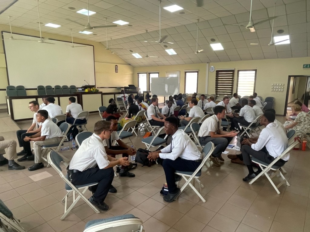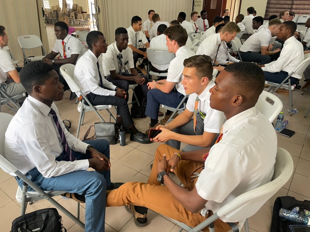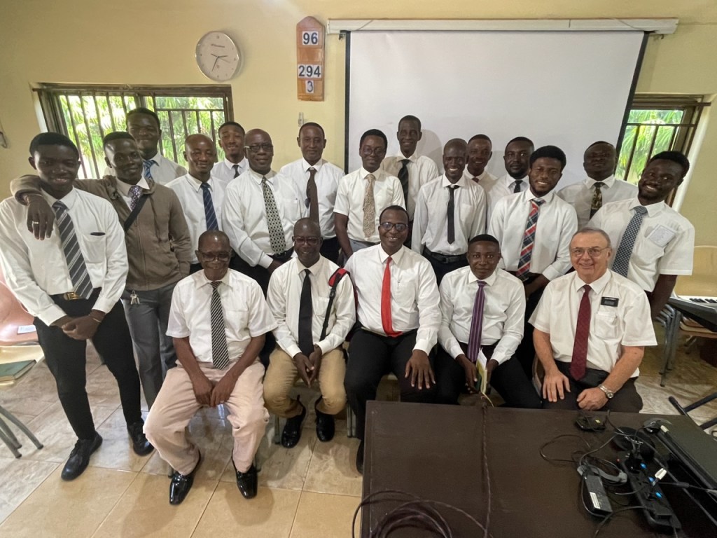 Saturday Morning Adult Meeting. We had 35 in attendance in Tamale and another 32 in Bolgatanga. We are grateful for the work of Elder Steinmetz (kneeling on the far right) who helped make the streaming of the sessions possible.