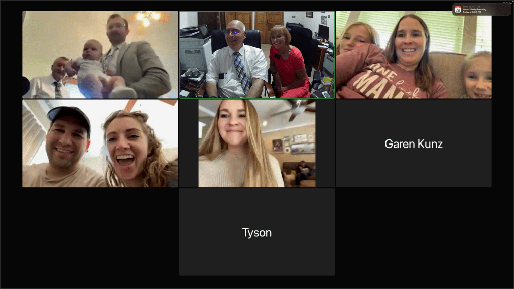 I will mention just one other item, and that is a personal family event: The blessing of our newest grandchild, Nolan Wyatt Kunz. We were able to participate via zoom as did most of the rest of the family. Mauren and Justin and their kids made the drive to Fort Worth to be there in person. How grateful we are for our 26 grandchildren and the joy and love of a faithful, close-knit, and supportive family.